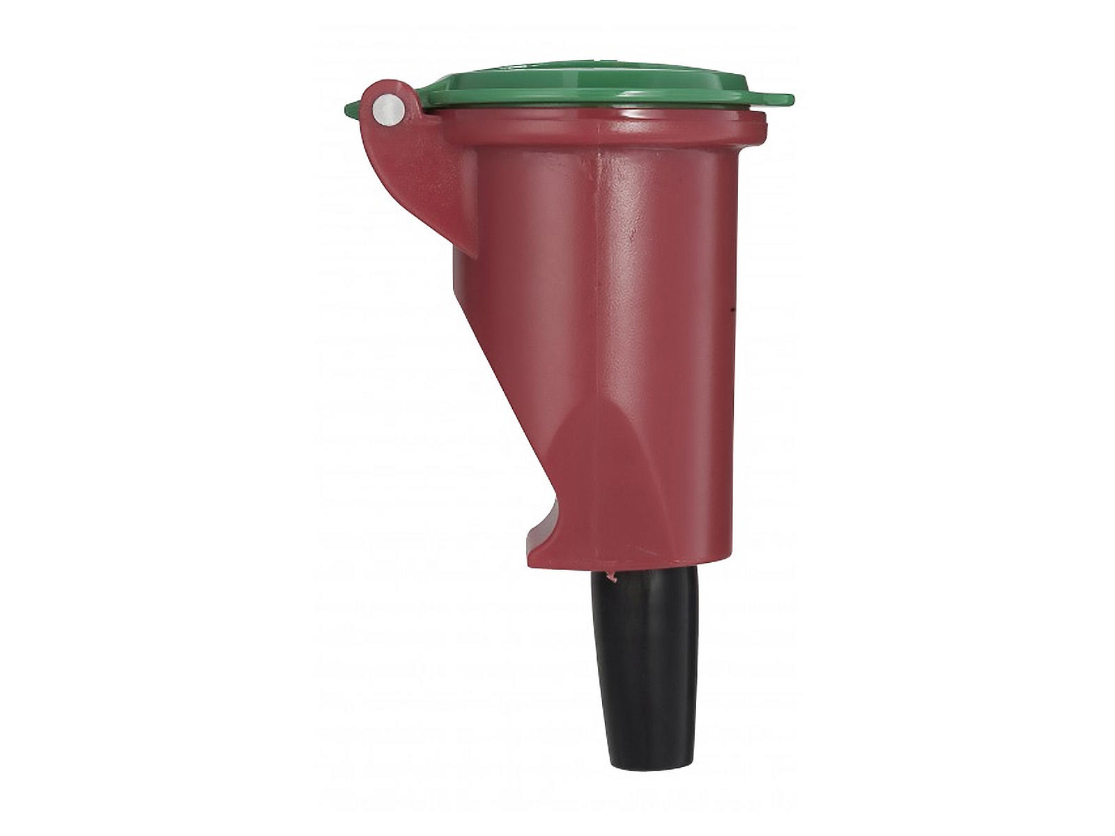 Det røde rundforlængerled med klap og jord er en teknisk avanceret løsning, der giver pålidelig og sikker forlængelse af strømforbindelser.