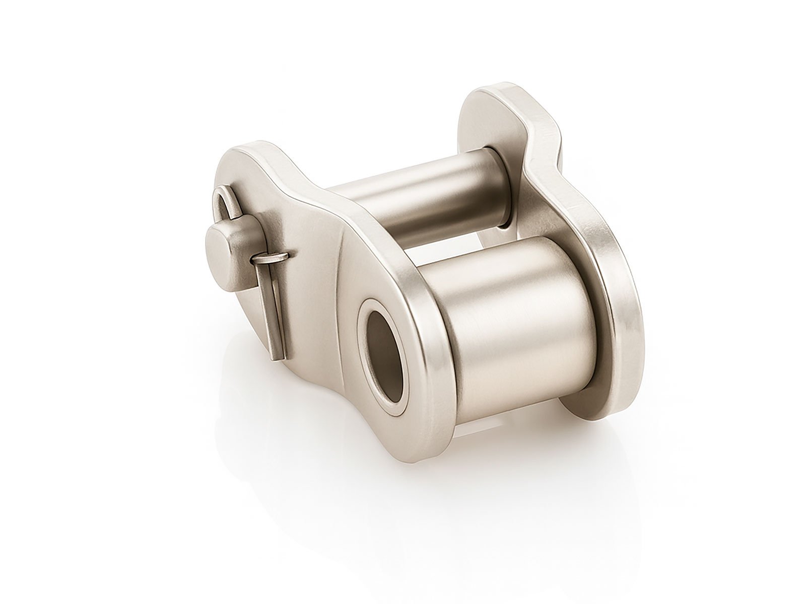 - Anvendelse: Til rustfri BS/ISO 06B-1 rullekæder i lette og mellemstore industridrev, automationsanlæg, pakkelinjer, fødevare- og procesudstyr, hvor kæden skal kunne forlænges eller kortes i halve led for præcis tilpasning af kædelængde og centerafstand.