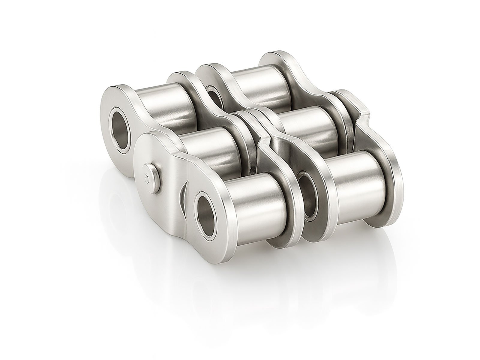 - Udførelse/Materiale: Dobbelt forkrøbbet samleled i rustfrit stål med inder- og yderplader, bøsninger og tappe, velegnet til fugtige, udendørs eller rengøringskrævende miljøer med korrekt smøring eller godkendt fødevareolie. Fremstillet efter BS/ISO 606 for 08B-2, så pasninger og tolerancer matcher den tilhørende rustfri duplex rullekæde, samtidig med at den forkrøbne geometri muliggør ekstra fin længdejustering.