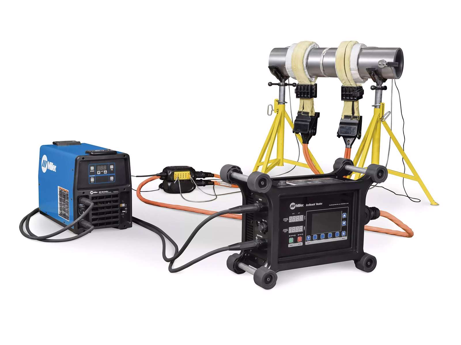 Induktionsvarmeværktøjer som luftkølede kabler eller quick wraps tilsluttes direkte til ArcReach Heater, som får strøm fra eksisterende svejseudstyr på stedet. Systemet er designet til præcis temperaturstyring, automatisk dokumentation og høj driftssikkerhed – selv under krævende industrielle og byggepladsmiljøer.