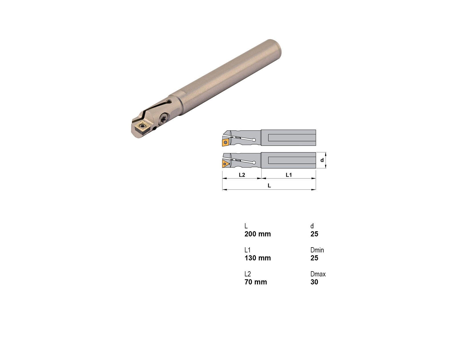 Canela justerbart udborestål er designet med et enkelt skær for præcision og effektivitet. Med et skaft på 25 mm og en justerbar skærediameter på 25-30 mm, tilbyder dette værktøj en skæredybde på op til 70 mm og en total længde på 200 mm. Udstyret med TC platter, sikrer dette borestål høj ydeevne og holdbarhed, selv uden kølesystem. Ideel til industrielle anvendelser hvor præcise og dybe boreoperationer er nødvendige.