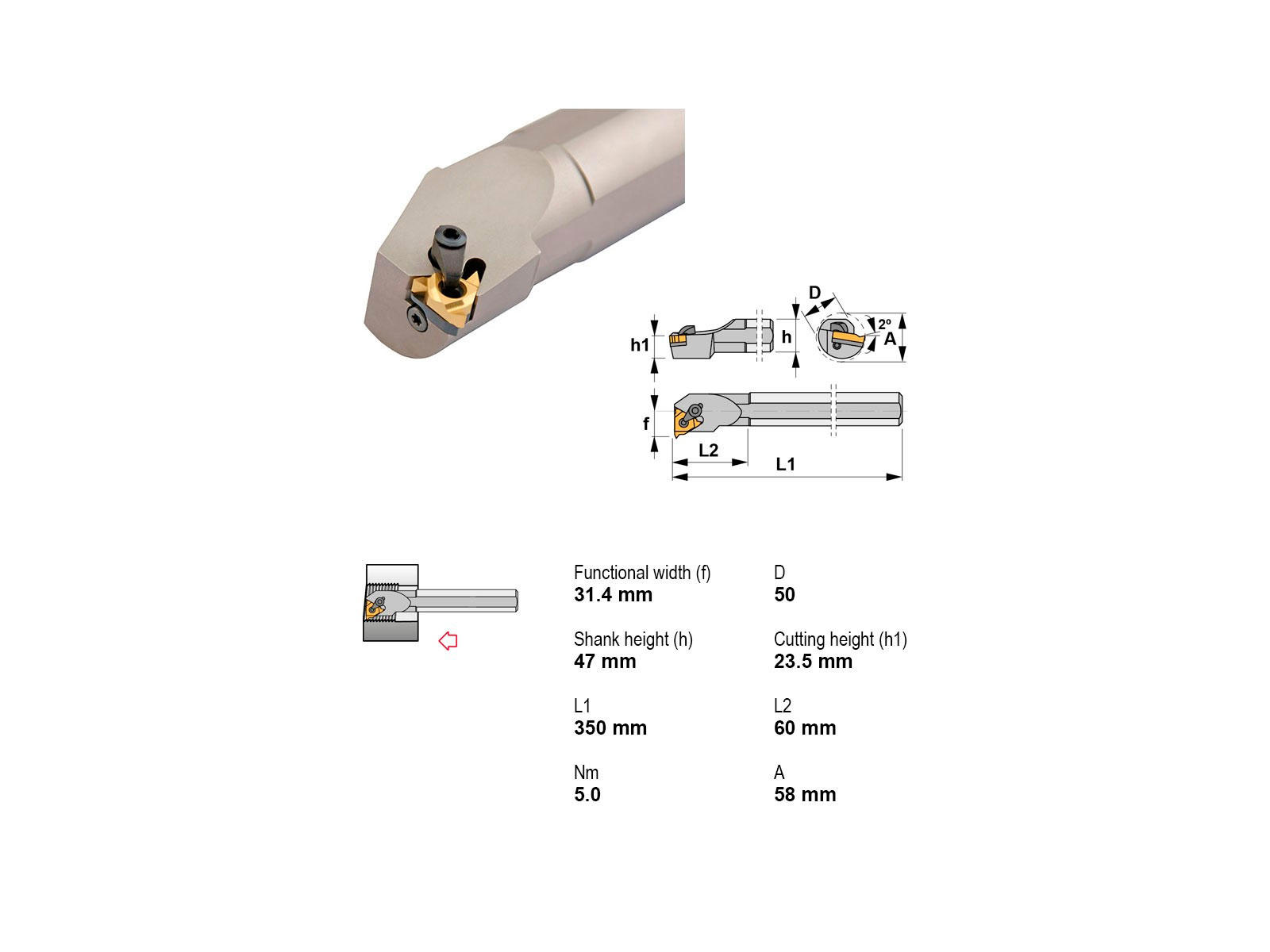 Canela S50U-CTXNR27 er et robust gevindudborestål til indvendig gevindbearbejdning. Med sin Ø50 mm skaftdiameter og skærediameter på 44 mm sikrer den stabilitet ved bearbejdning af højreindgreb. Uden køling og kompatibel med 27NR.. platte, er den velegnet til præcis og kontrolleret skæring i produktionsmiljøer.