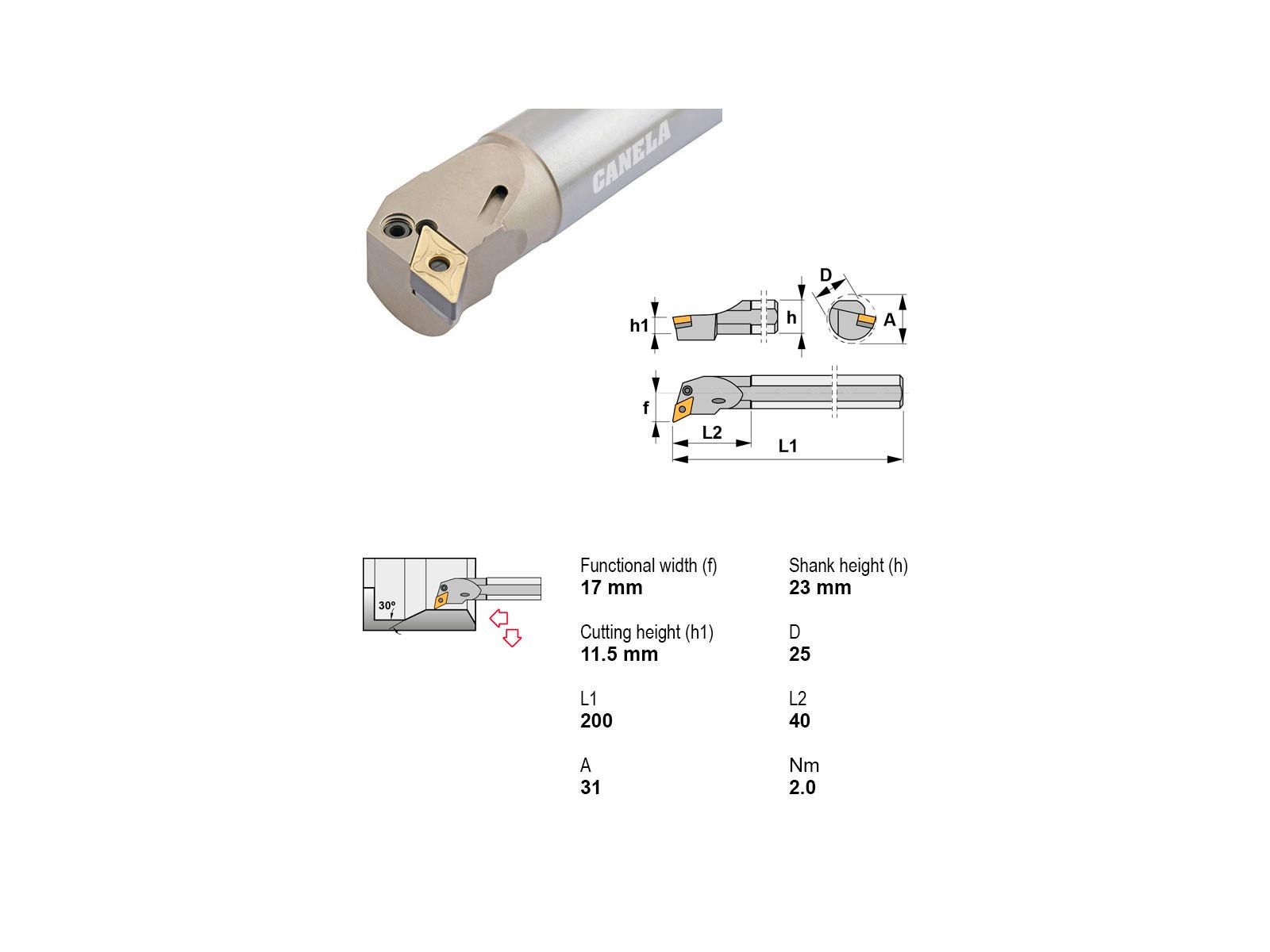 Canela A25R-PDUNR11 udborestål er ideel til præcisionsarbejde. Det er udstyret med en skærediameter på 31 mm og en kølekanal for optimal ydeevne. Med sit robuste design sikrer det præcise og effektive resultater i krævende opgaver.