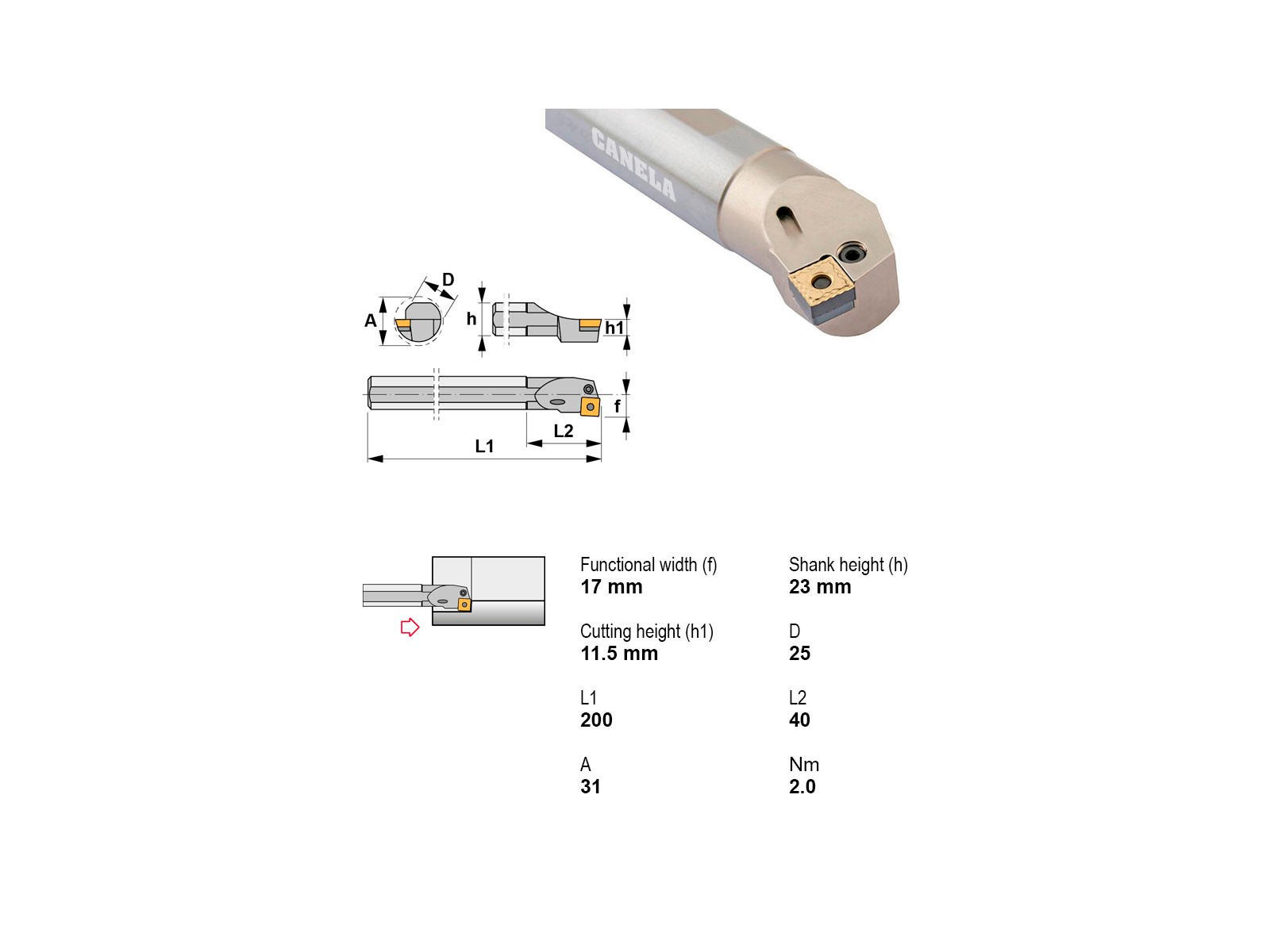 Canela A25R-PSKNL12 udborestål er designet til præcis boring med høj ydeevne. Udstyret med kølekanal for effektiv varmeafledning, sikrer det længere levetid og præcision i arbejdsprocesser. Perfekt til industrielle applikationer, hvor præcision og holdbarhed er afgørende.