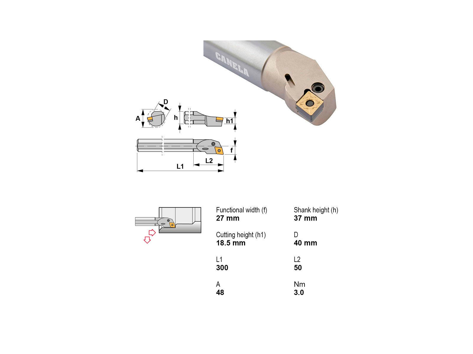Canela A40T-PCLNL12 udborestål er ideel til præcisionsbearbejdning. Med et robust skaft og integreret kølekanal sikrer den optimal skæreevne og lang levetid, selv ved krævende opgaver. Passer til CN..1204.. plattetyper.
