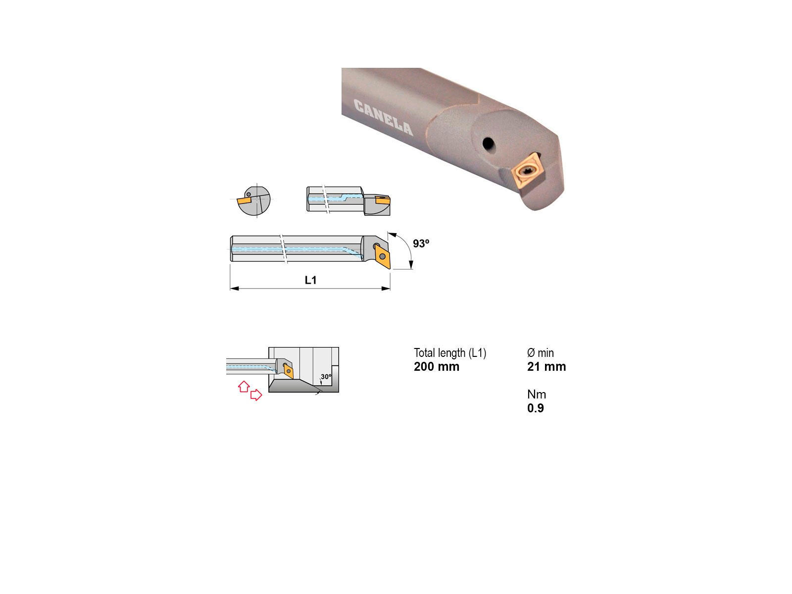 Canela E16R-SDUCL07 udborestål er en højpræcisionsløsning til professionel bearbejdning. Med en længde på 200 mm og en skærediameter på 21 mm sikrer det optimal stabilitet og præcise resultater. Egnet til venstrehåndsindgreb og integreret køling for længere værktøjslevetid.