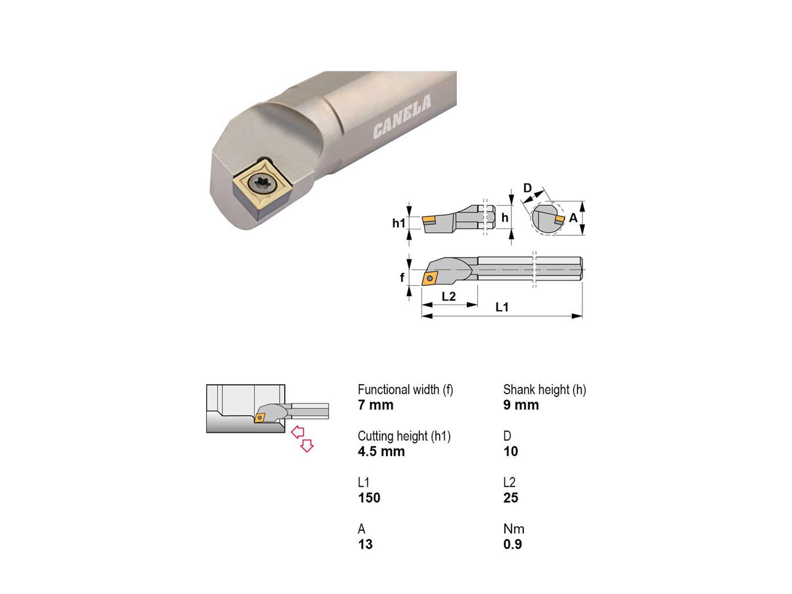 Canela udborestål S10M-SCLCR06 er et præcisionsværktøj designet til højtydende drejning og boring. Med robust konstruktion og præcise specifikationer er det ideelt til krævende industrielle opgaver.
