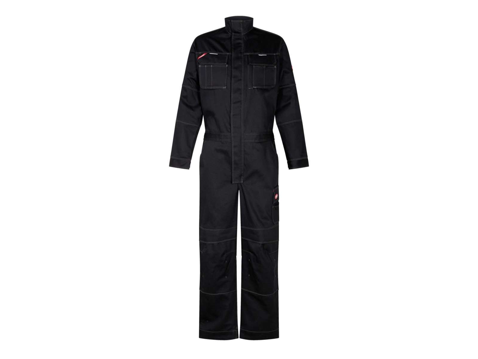 Denne kedeldragt, fremstillet af 100% bomuld, er karakteriseret ved dens kontraststikninger og ergonomisk formet, forstærket knæparti. For at sikre en optimal pasform er der indbygget en skjult lynlås og velcro-lukning på forsiden, suppleret med elastik i taljen på bagsiden.