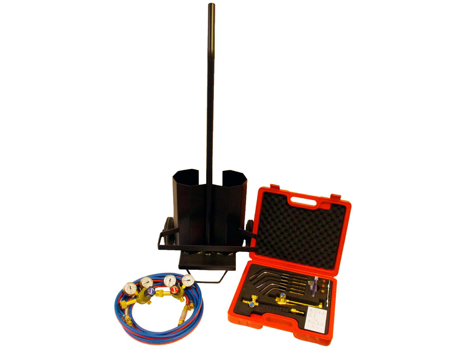 Et lille og transportabelt svejse og skæresæt med plads til 5 l. gasflasker.