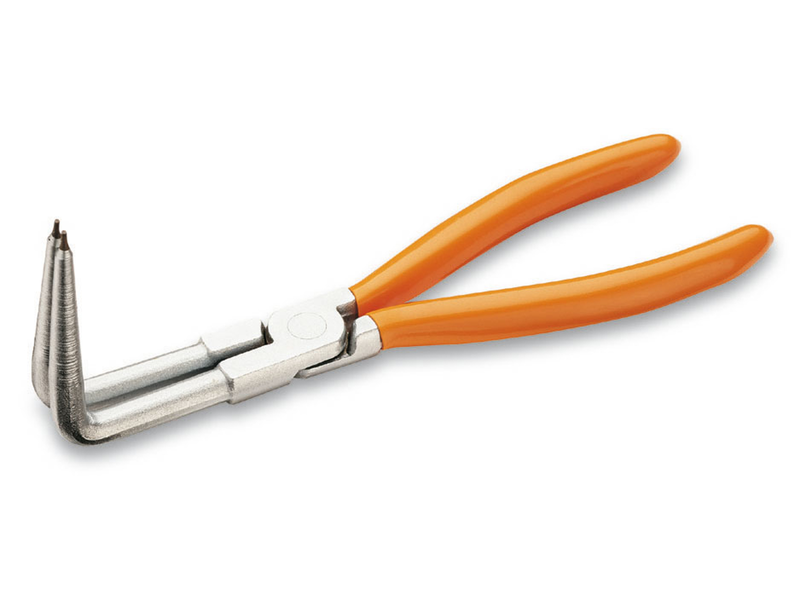 Beta Tools indvendige låseringtang, 90° buet og 190 mm lang, er lavet til præcist arbejde med låseringe i huller. Med sin unikke vinkeldesign og lange spidser giver tangen nem adgang til svært tilgængelige steder. Håndtagene er belagt med PVC, hvilket sikrer et komfortabelt og stabilt greb under brug. Tangen er ideel til opgaver, hvor præcision og kontrol er afgørende.
