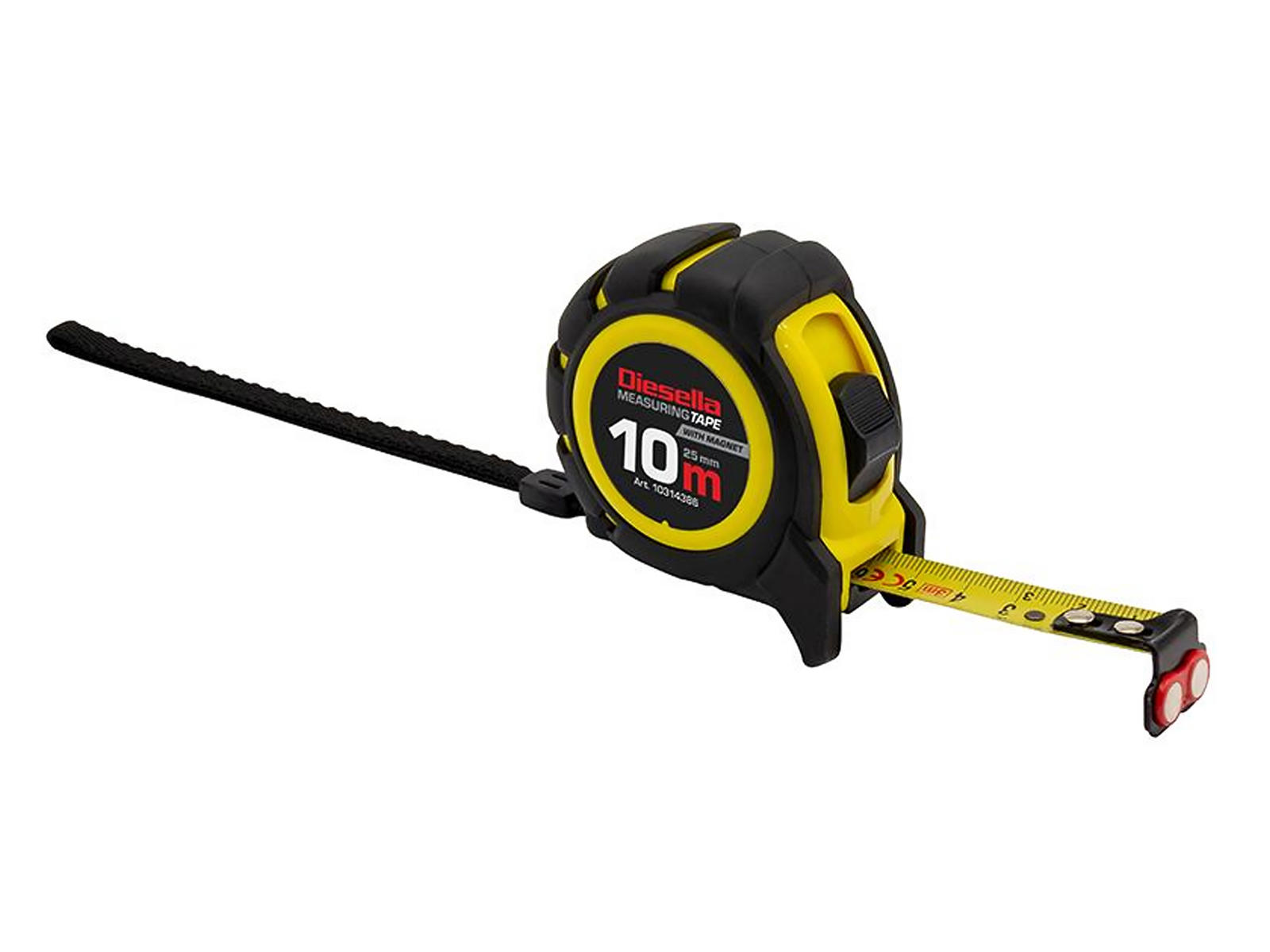Oplev Diesella professionelle båndmål, der tilbyder pålidelig præcision med Power-lock funktionen. Den matte gule båndmålfarve og de røde tal for hver 10 cm sikrer let aflæsning, mens husets gummibelægning giver ekstra beskyttelse. Tykkelsen på 0,14 mm sikrer holdbarhed og pålidelighed i enhver arbejdssituation.