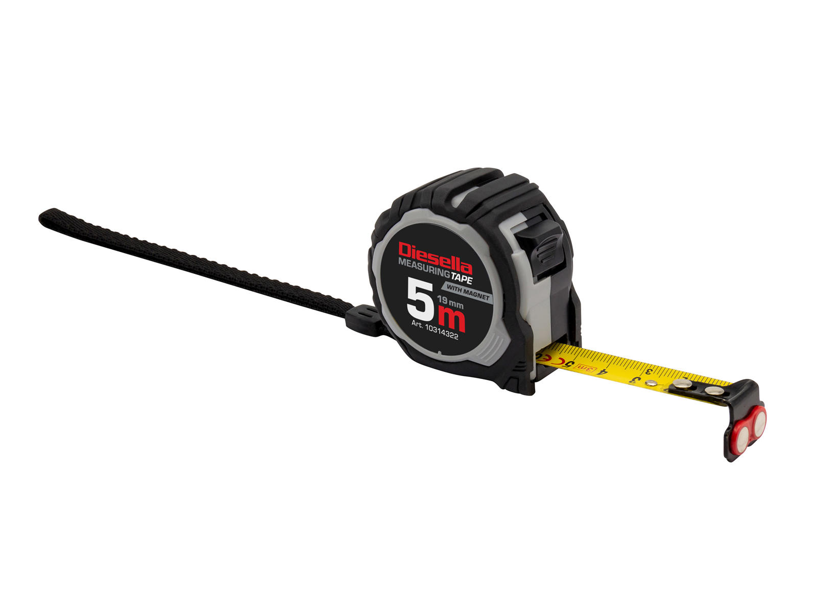Målebånd 5. 0 mtr. b=19mm gummibelagt disella