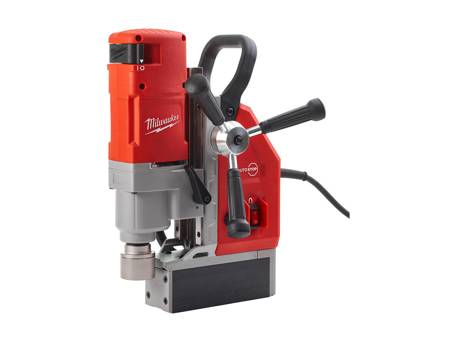Milwaukee MDE 41 Magnetboremaskine er designet med en blanding af præcision, kraft og alsidighed for at sikre optimal ydelse under arbejdet. Udstyret med en robust 1200 W motor, er denne boremaskine specifikt optimeret for at garantere den bedste borehastighed til enhver opgave. Yderligere er den to-gearede funktion indstillet til enten 475 eller 730 omdrejninger pr. minut, idet den tilpasser sig forskellige borekrav, enten ved kernebor eller metalbor. For at forhøje sikkerheden under anvendelse har den en indbygget autostop-funktion, der automatisk standser maskinen, hvis magneten løsnes fra arbejdsemnet.