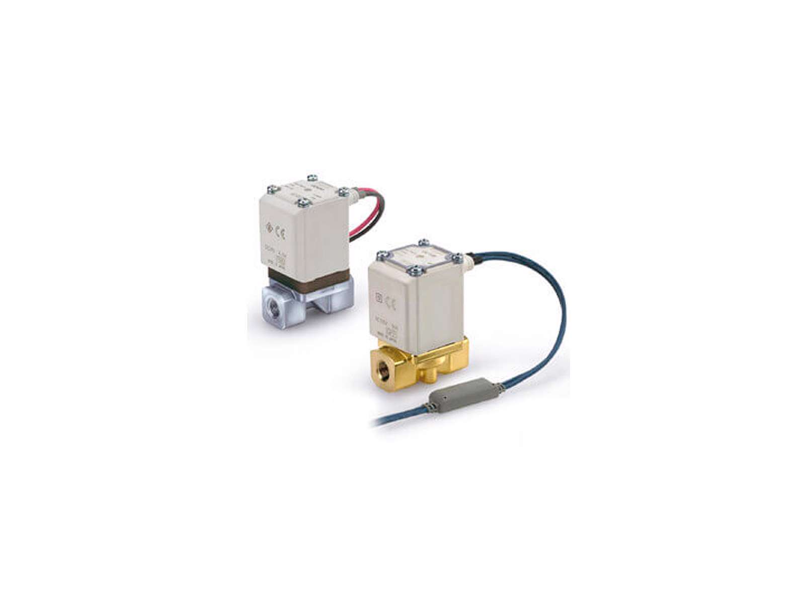 Magnetventil med hus i aluminium og 2 porte med 1/4" gevind. 24V DC med DIN-terminal med stik. NBR-tætninger. Egnet til luft. Normally closed.