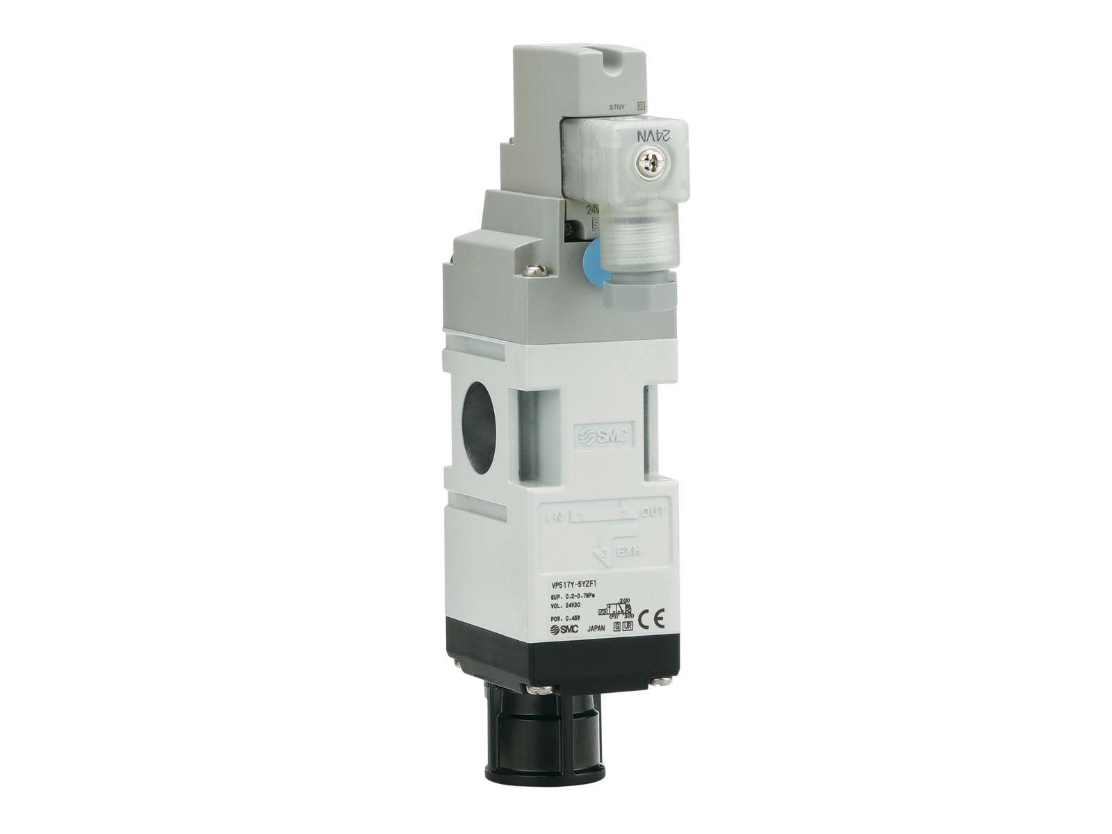 24V DC monostabil magnetventil med 3 porte og 2 positioner. 1/2" gevind i porte. DIN-terminal med connector og lyssikring. Normally closed.