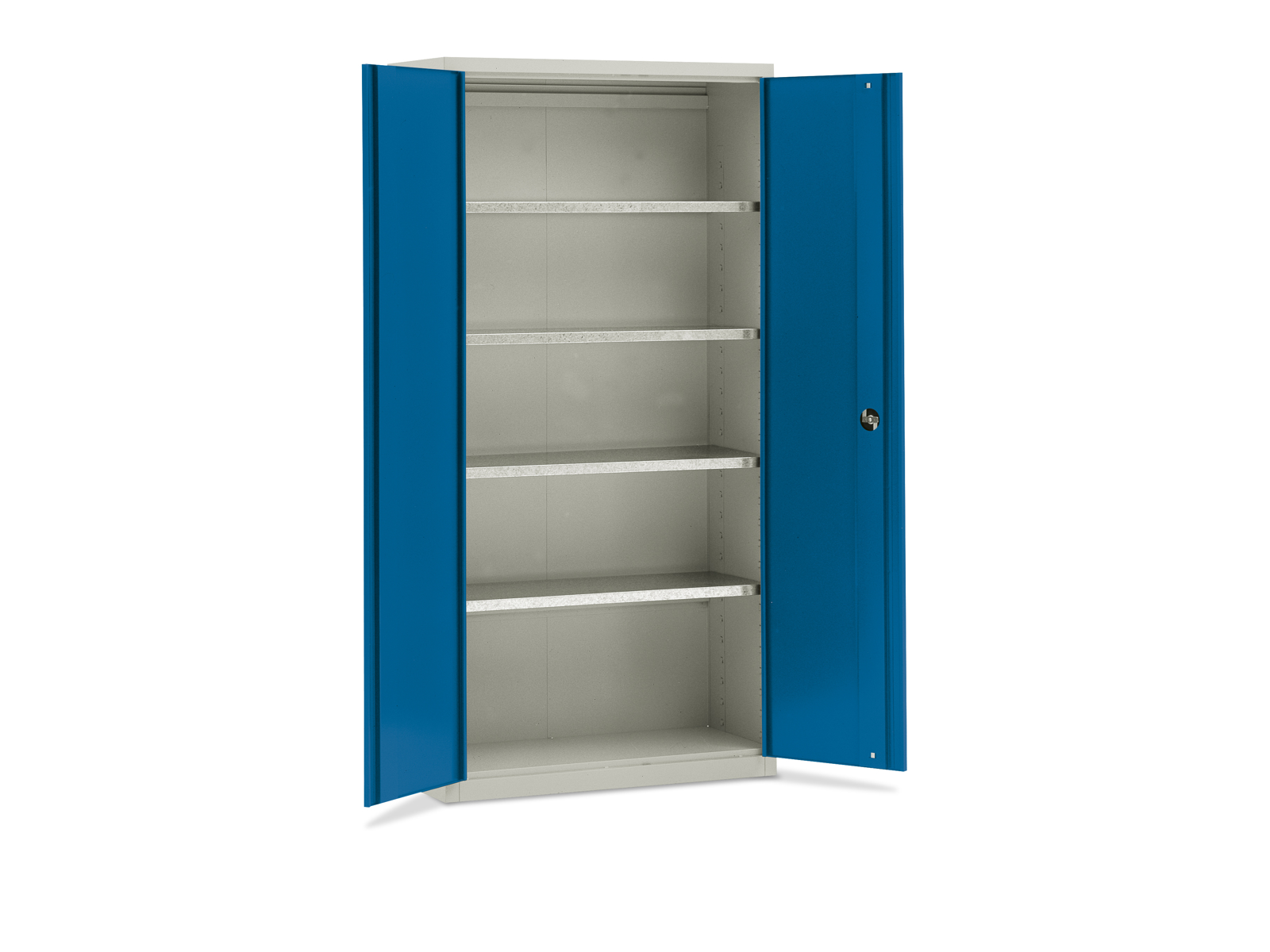 Materialeskab MS-1 med en dybde på 600 mm: En uundværlig opbevaringsløsning fremstillet med fokus på robusthed og funktionalitet. Udstyret med fire galvaniserede hylder, skabet er konstrueret til at yde holdbar og fleksibel opbevaring i industrielle omgivelser.