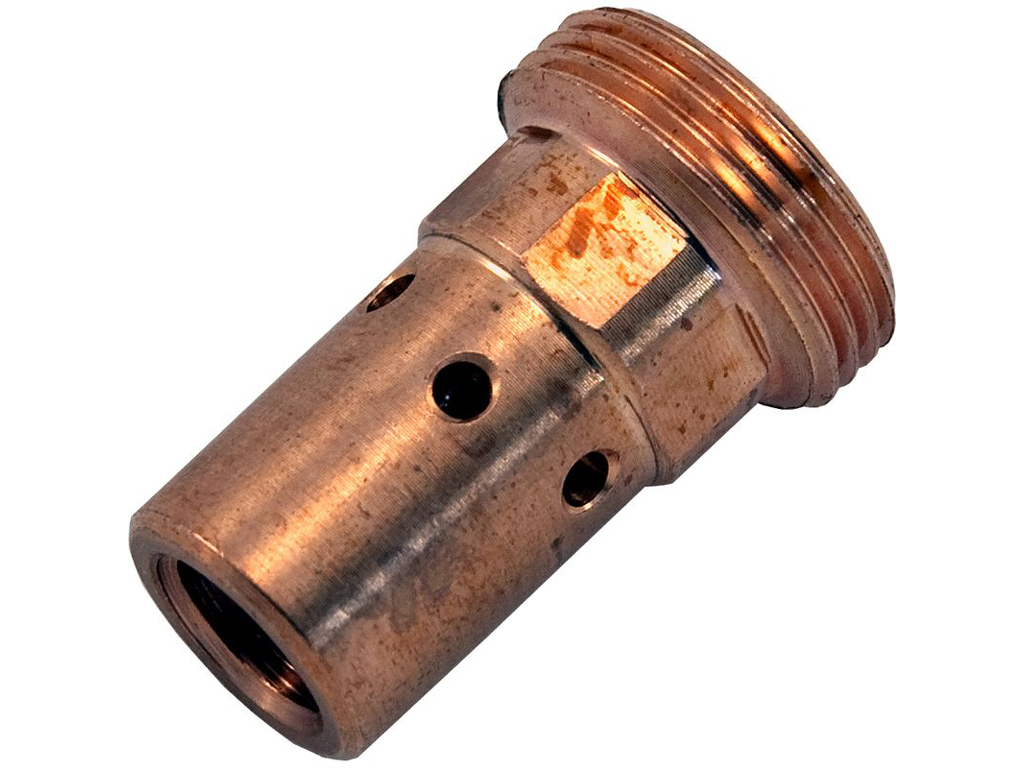 Udførelse/Materiale: Fremstillet i CuCrZr-legering, dvs. kobber med små mængder krom og zirkonium. Kombinationen giver høj elektrisk og termisk ledningsevne med øget styrke og varmebestandighed, hvilket reducerer slid i dyseområdet og forlænger levetiden i forhold til standard messingløsninger.