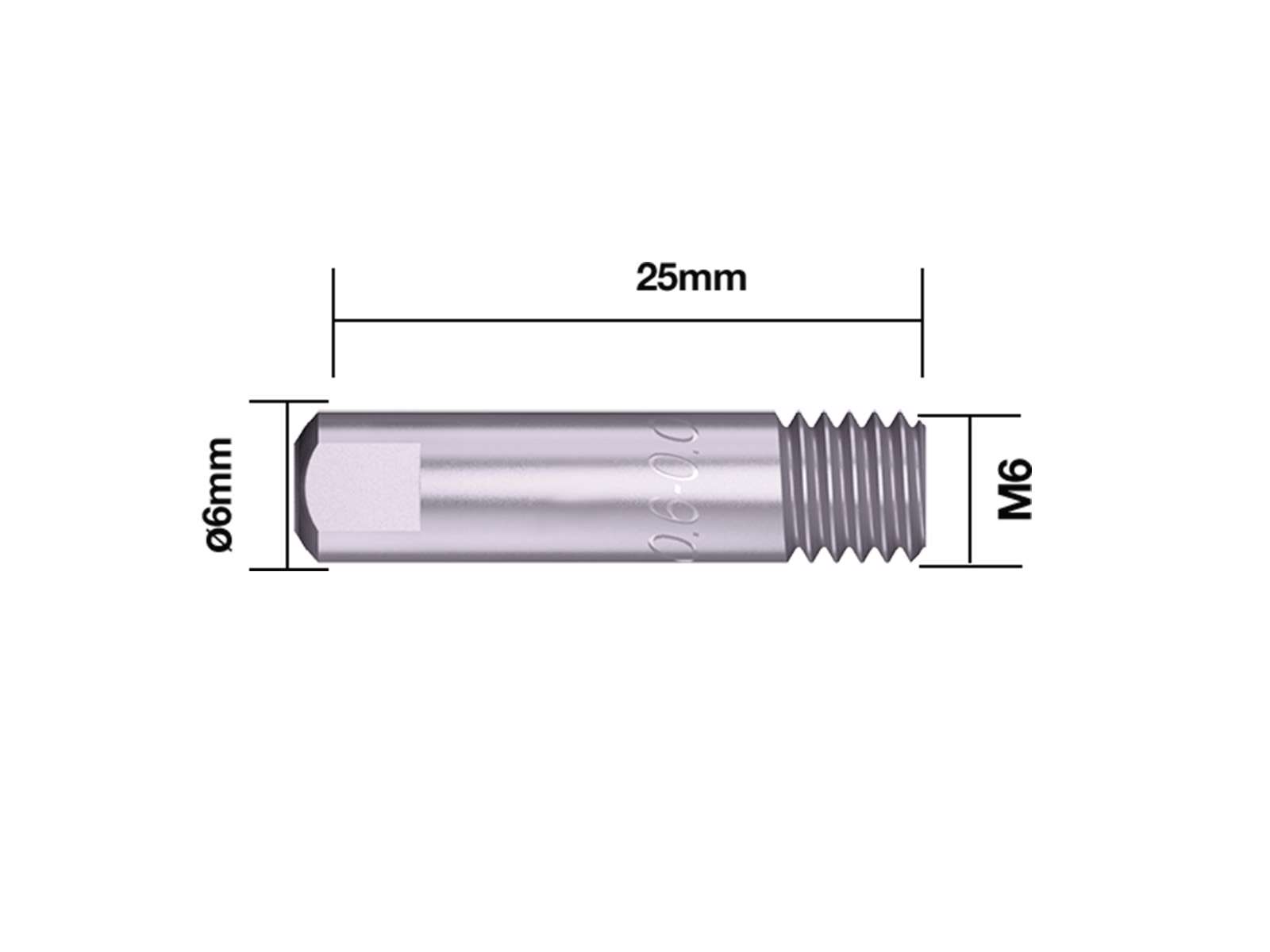 Mål: Længde 25 mm; gevind M6.
