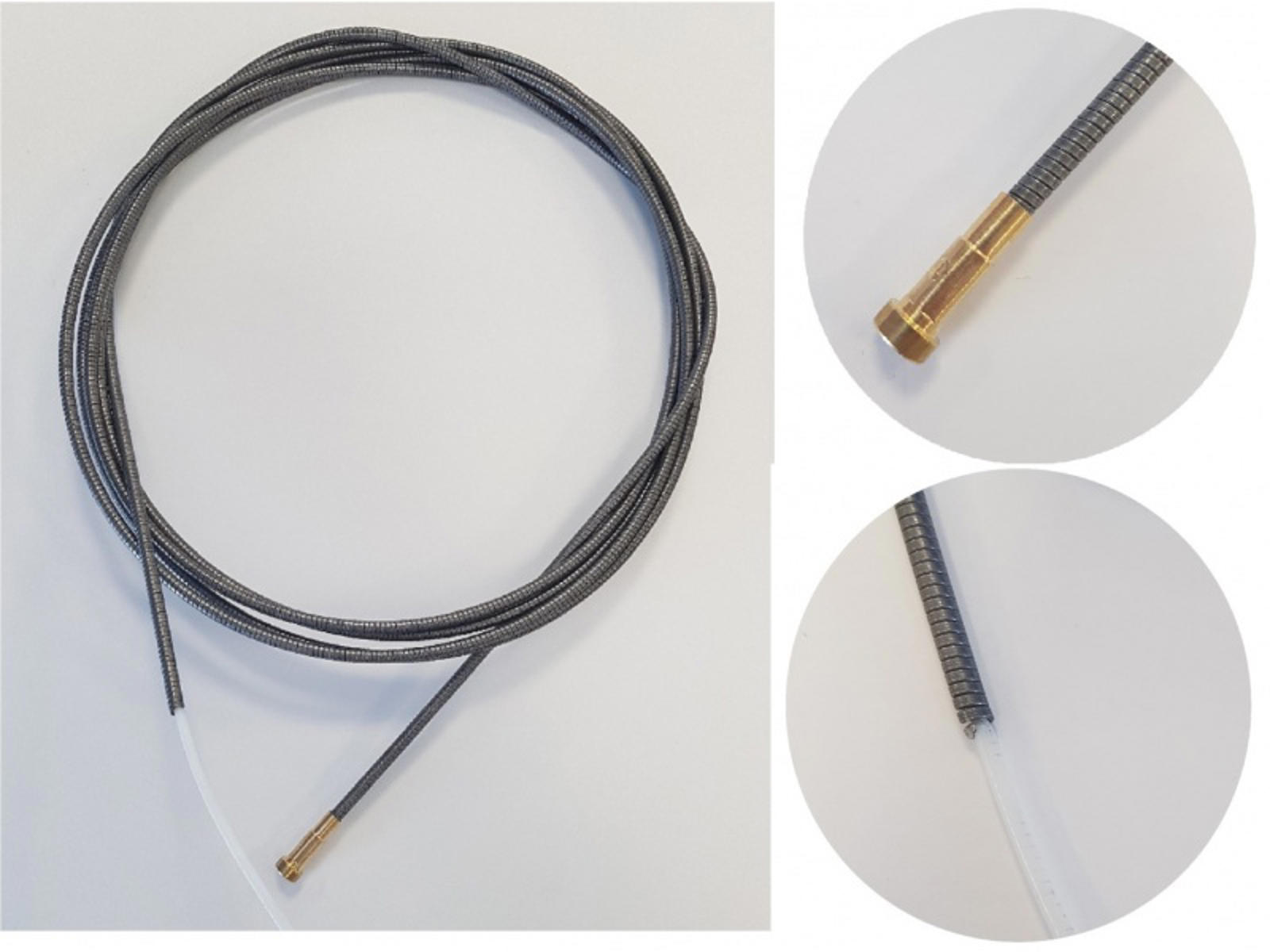 Stålspiralen giver lineren styrke, mens den indvendige teflonkerne giver meget lidt modstand..
