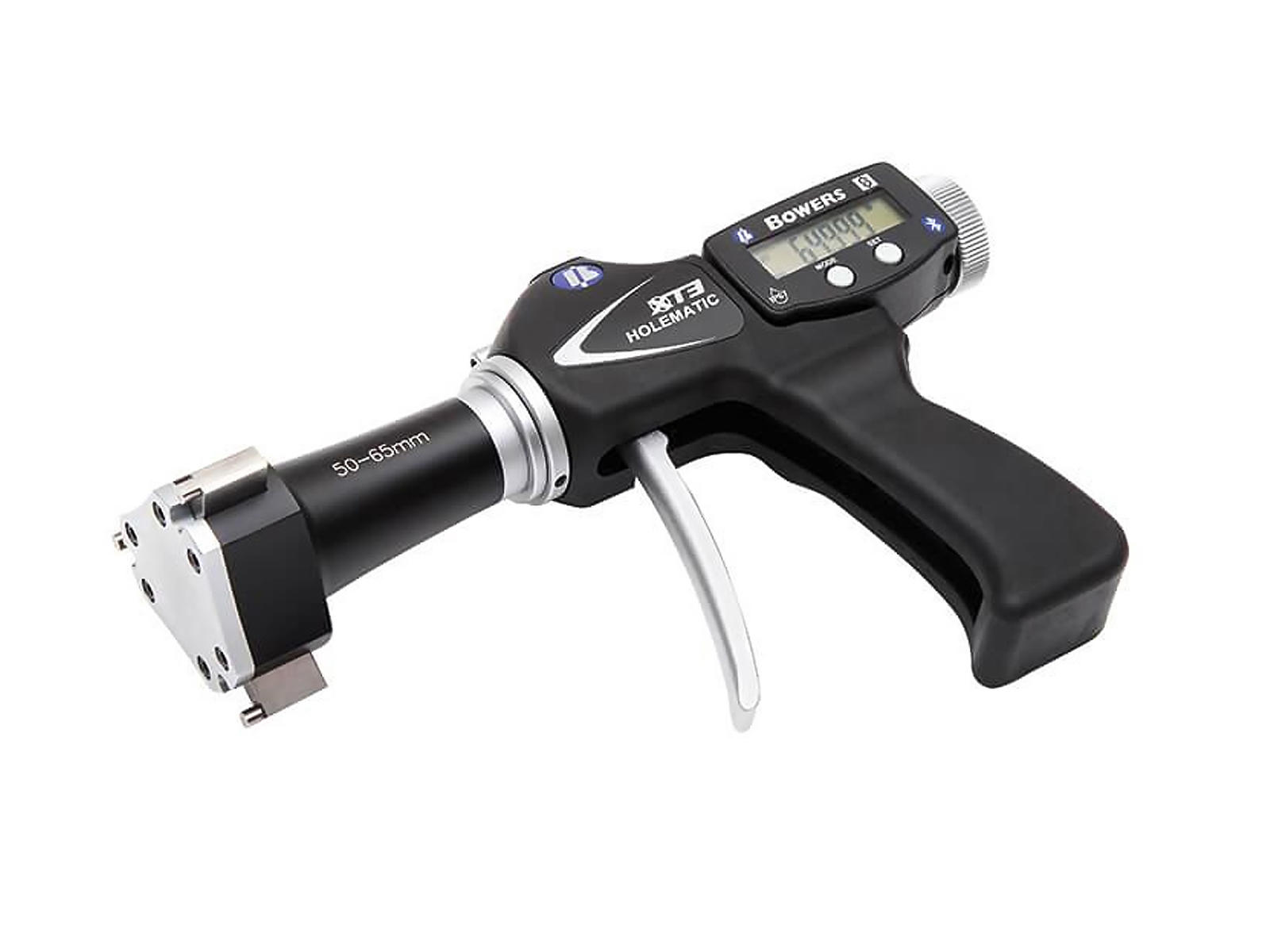 BOWERS XTH80M-BT, en fremtrædende digital 3-punkts mikrometer lavet til det professionelle segment. Dens robuste konstruktion suppleres med et ergonomisk pistolgreb, og den dækker et måleområde fra 80-100 mm. Dens LCD-skærm er ikke alene stor, men også krystalklar og certificeret til IP67, hvilket sikrer beskyttelse i krævende miljøer. Til effektiv og præcis datahåndtering er der integreret Bluetooth-funktionalitet for trådløs overførsel, understøttet af Sylvac’s SYLCOM software.