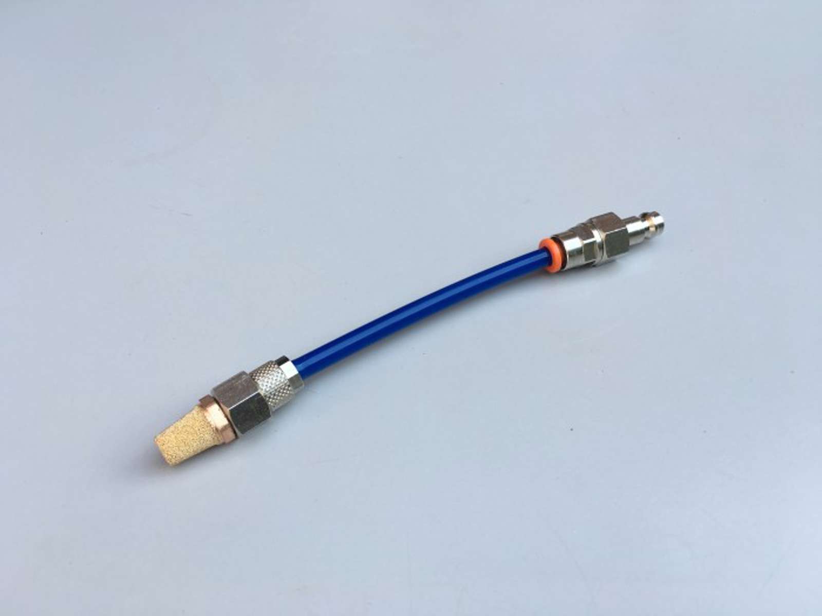 Dysen er udstyret med en aftagelig han-lynkobling i den ene ende, hvilket gør installationen hurtig og enkel. I den modsatte ende findes en gasforstøver, der sikrer en ensartet fordeling af beskyttelsesgassen. Denne konstruktion gør dysen velegnet til brug sammen med skumpuder og gasdækningssystemer, hvor præcision er afgørende.