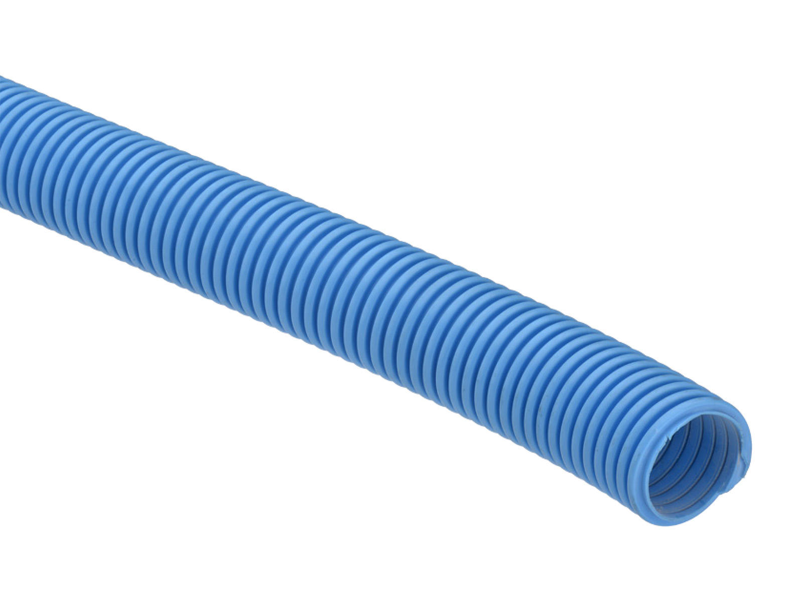 Blå udsugningsslange fremstillet af høj kvalitet EVA (Ethyl Vinyl Acetat) for effektiv fjernelse af svejserøg, støv og andre partikler. Den eksterne korrugering kombineret med en glat inderside sikrer optimal luftstrøm, hvilket gør slangen ideel til anvendelse med både elektrisk og trykluftdrevet værktøj.?