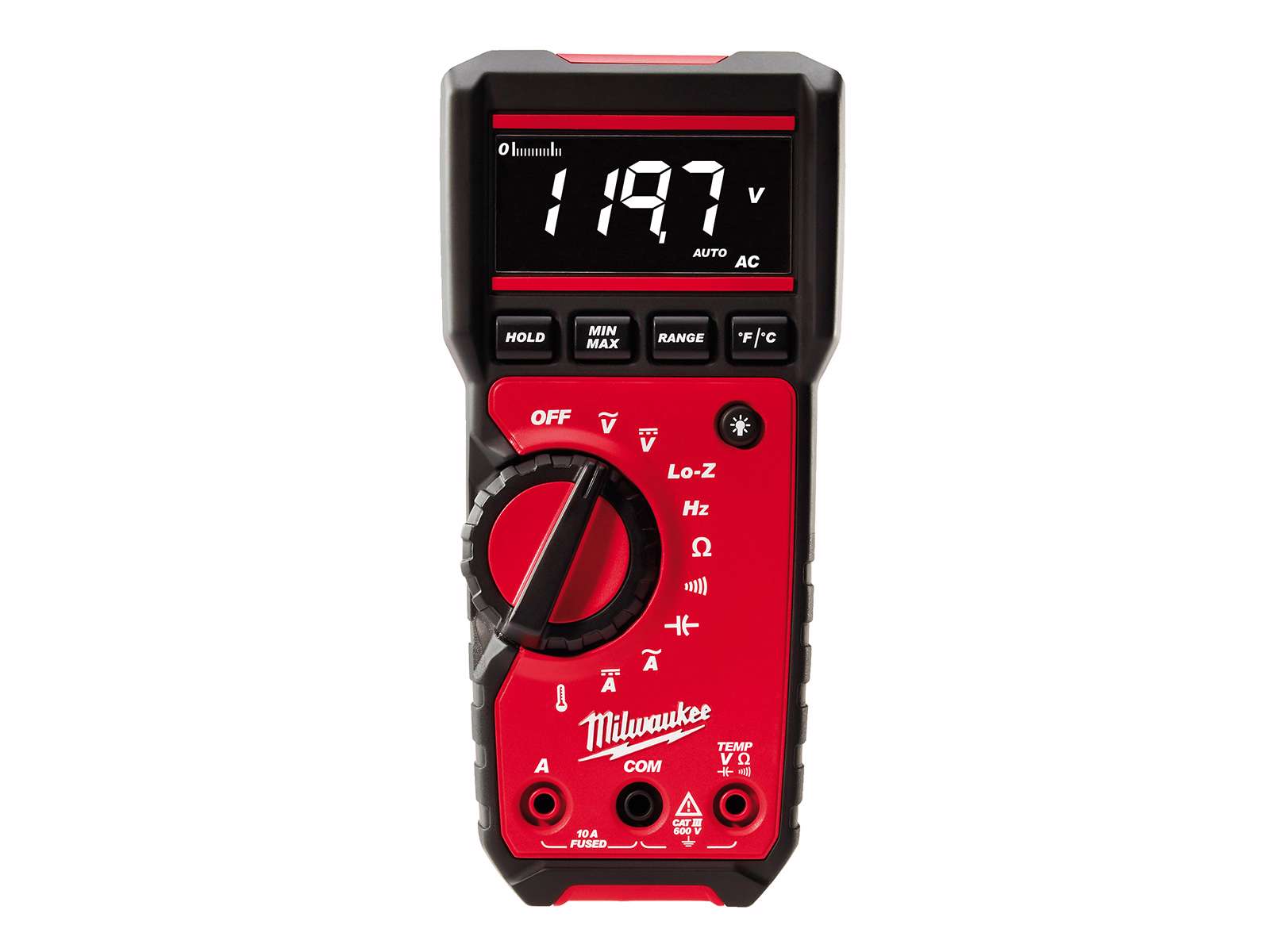MILWAUKEE 2217-40 er et digitalt multimeter, der skiller sig ud med sin Sand RMS-teknologi, som sikrer præcise og pålidelige målinger hver gang. Dens højkontrast display er designet til at være letlæseligt under alle forhold, hvilket gør det ideelt til brug i forskellige miljøer. Klassificeret som KAT III 600 V, tilbyder denne enhed forbedret sikkerhed under brug. Med funktionsvælgeren placeret på siden, er enheden let at betjene med én hånd, hvilket gør den særligt brugervenlig. Den er designet til at imødekomme de specifikke behov hos elektrikere, og tilbyder funktioner som Lo-Z for måling af lav impedans og en alsidig kontakttemperaturmåling.