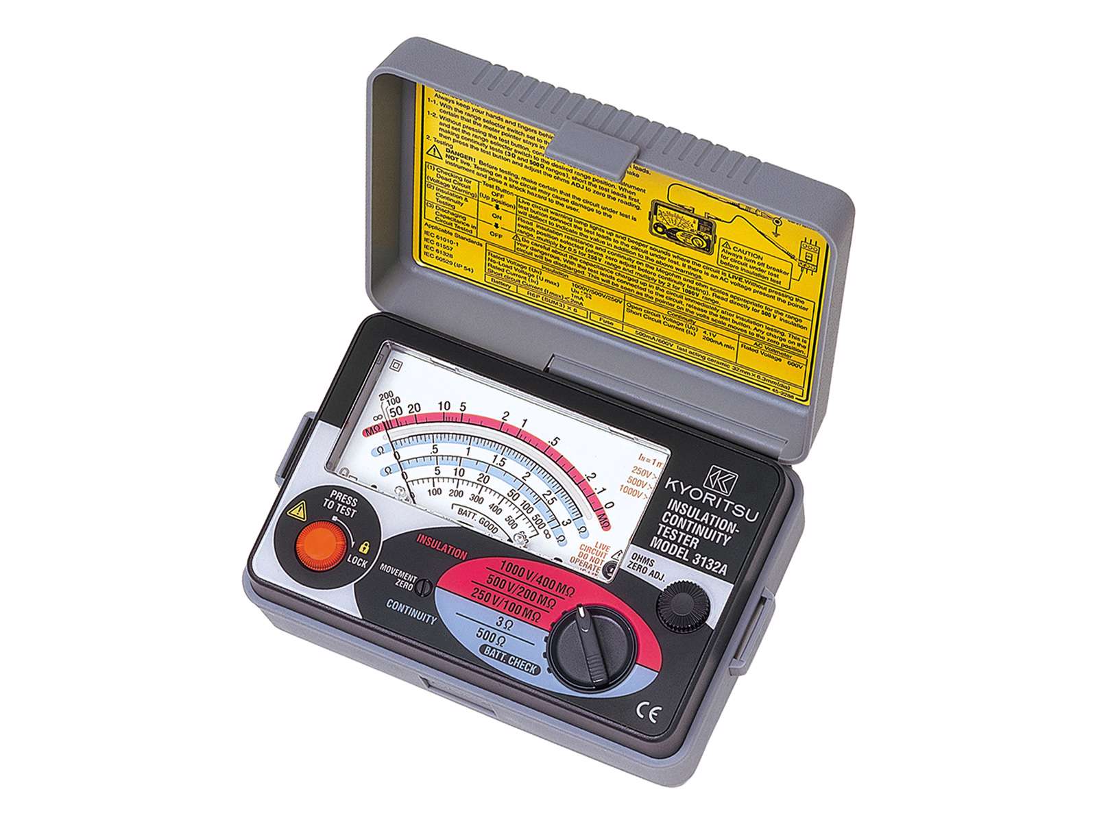 - Valgfri prøvespændinger på 250, 500 og 1000 V.