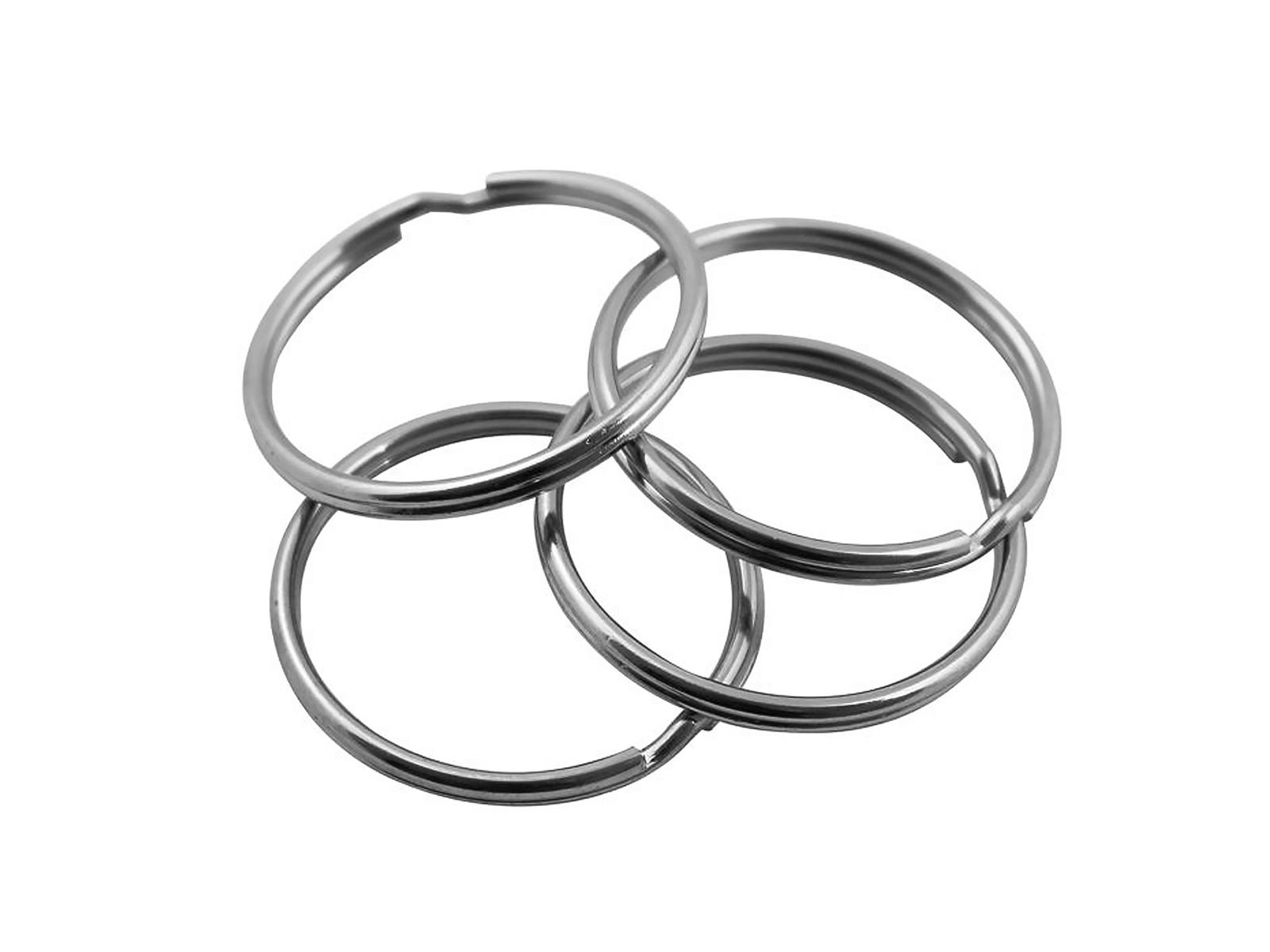 - Hver pakning indeholder 50 holdbare forniklede nøgleringe.