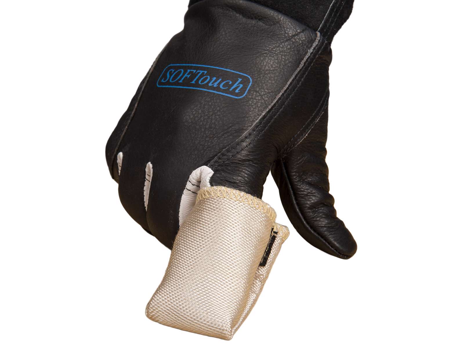 Denne TIG-finger er konstrueret af silicafiber og er udstyret med en krog- og løkkelukning. Den er ideel for situationer, der kræver øget beskyttelse og stabilitet, især i forbindelse med positionssvejsning.
