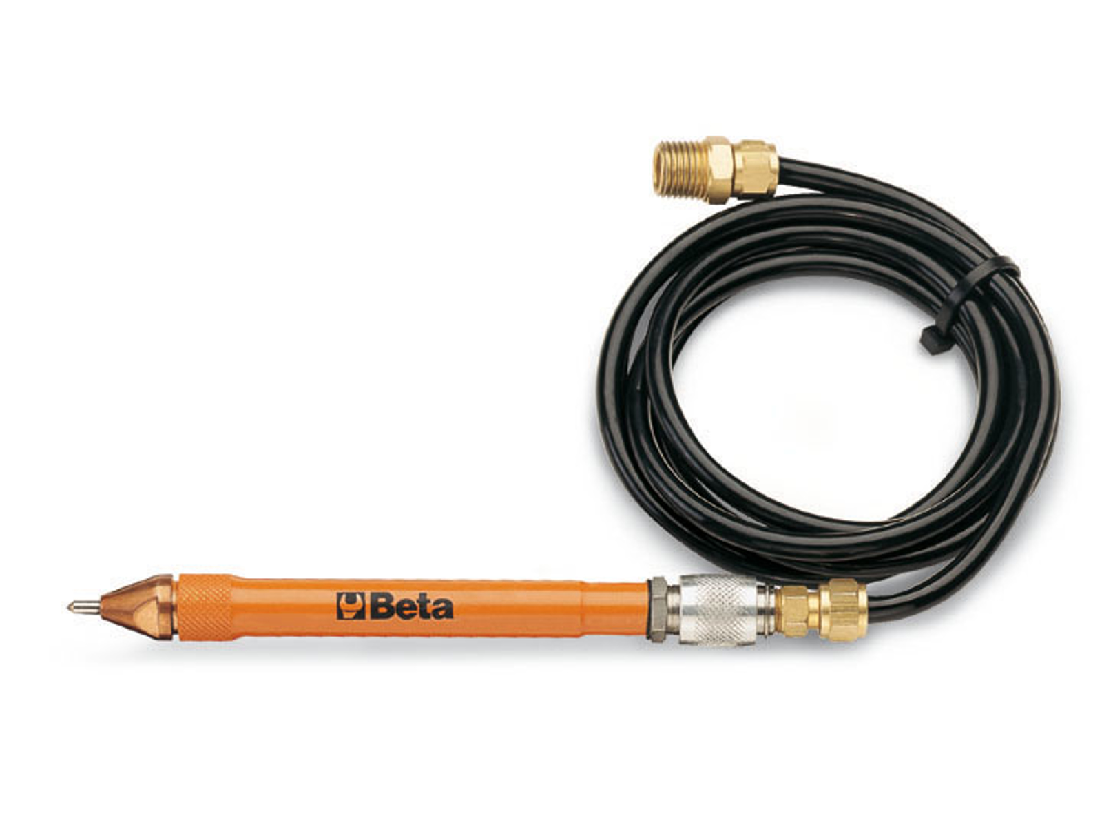 1948 Beta Gravørpen er designet til nøjagtig gravering på en bred vifte af materialer, herunder stål, rustfrit stål, aluminium, glas, sten og keramik. Den er udstyret med et wolframcarbid-spids, der sikrer præcise og holdbare markeringer. Den medfølgende hastighedsregulator og den 1,5 mm tykke PVC-luft tilførselsslange giver brugeren fuld kontrol over gravering, hvilket er essentielt for at opnå det bedste resultat i forskellige materialer. Dette værktøj er særligt velegnet til industrielle applikationer takket være dets robuste konstruktion og effektive luftforbrug.