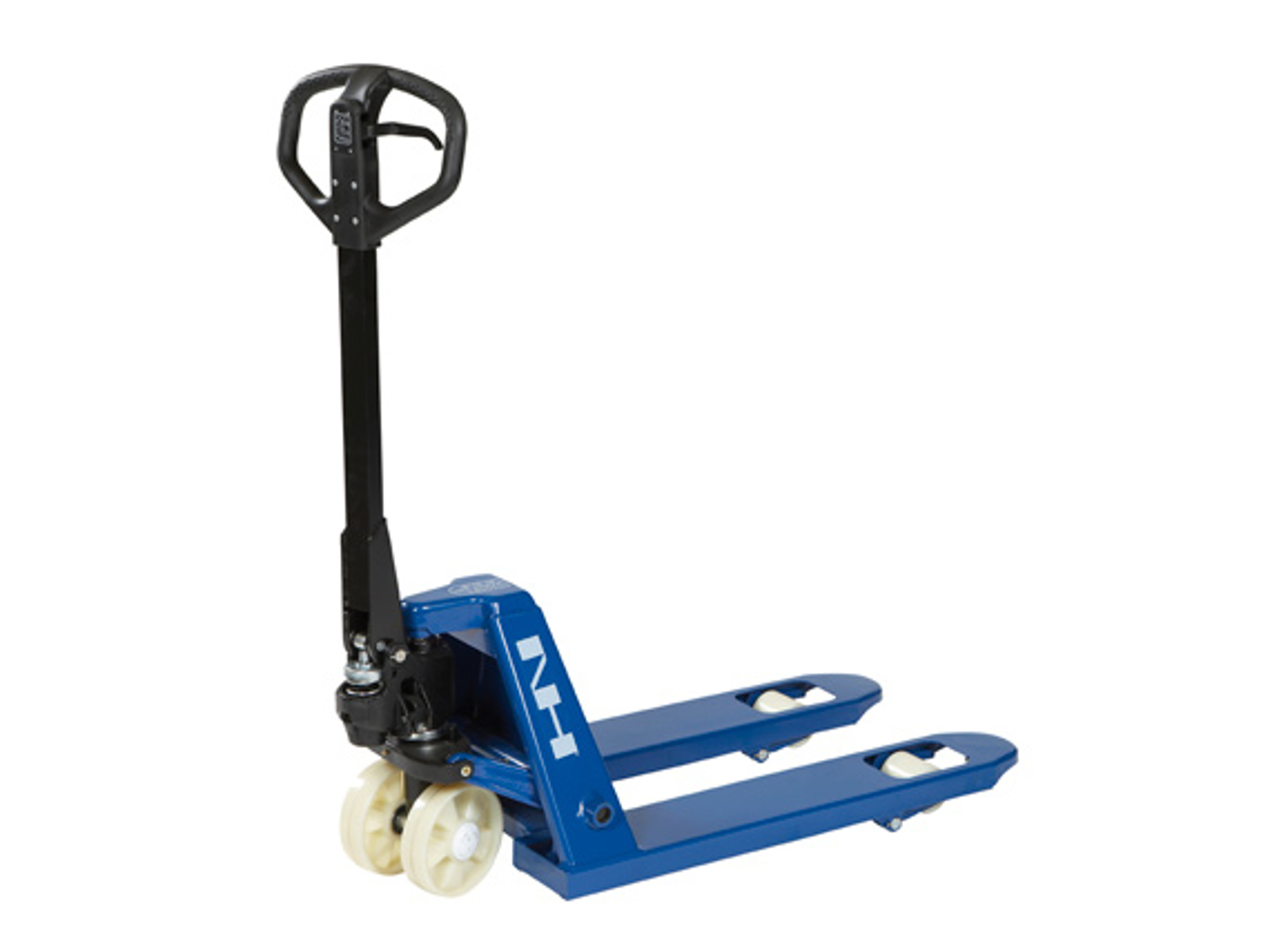 Denne pallevogn er udstyret med et ergonomisk og brugervenligt håndtag, der gør det nemt at betjene. Med en drejevinkel på 210˚ er det muligt at opnå optimal manøvredygtighed. Derudover er denne pallevogn monteret med rulle foran og bagved gaffelhjul for lettere til- og frakørsel på pallens brede side.
