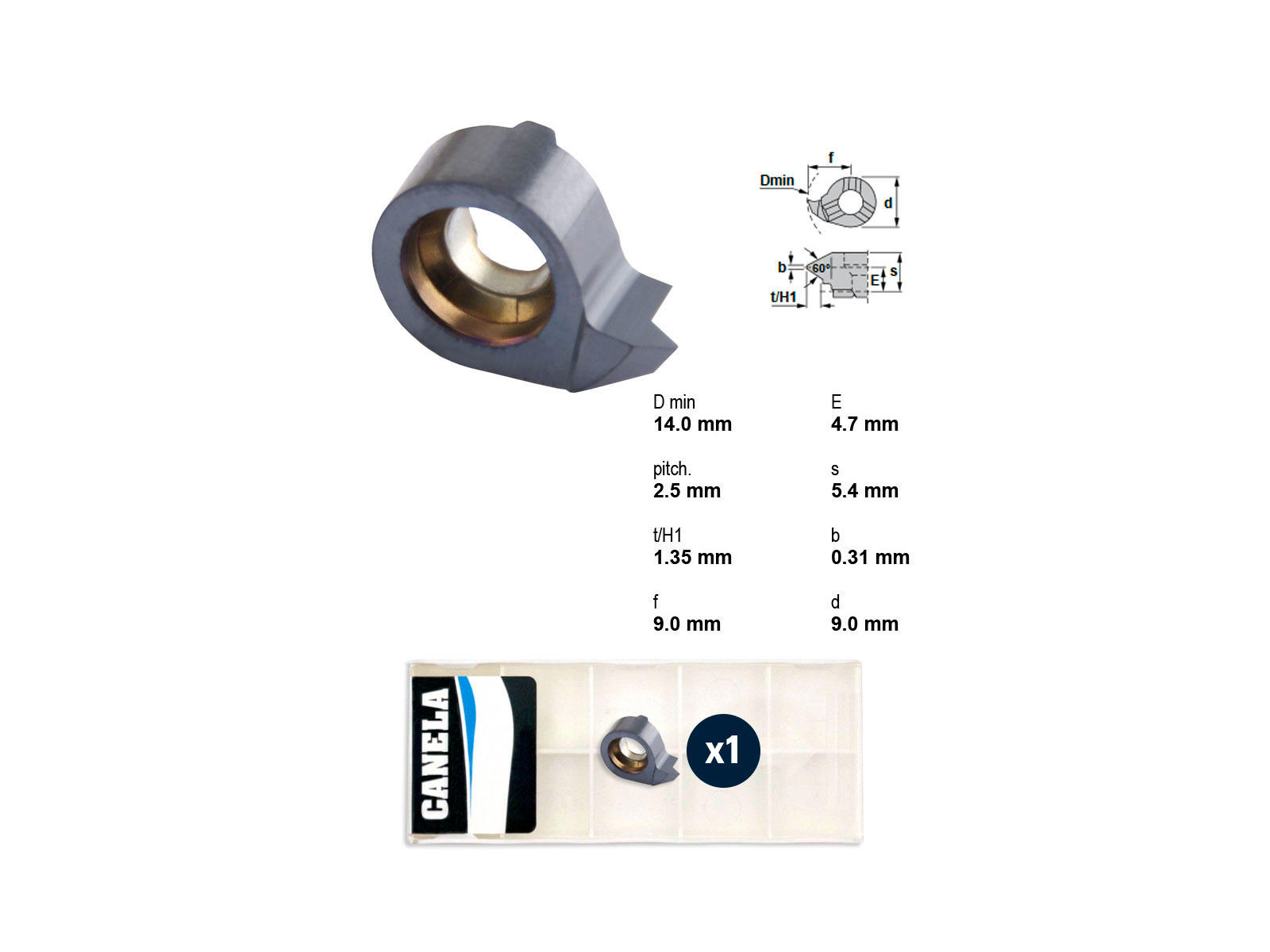 Canela platte RS014.1325.01TL20 er ideel til præcis bearbejdning af stål. Med en stigning på 2,5 mm og skæredybde på 1,35 mm sikres høj effektivitet. Diameteren er 9,0 mm, tykkelsen 5,4 mm, og overfladen er TL20-behandlet for optimal holdbarhed. Perfekt til deling og riller.