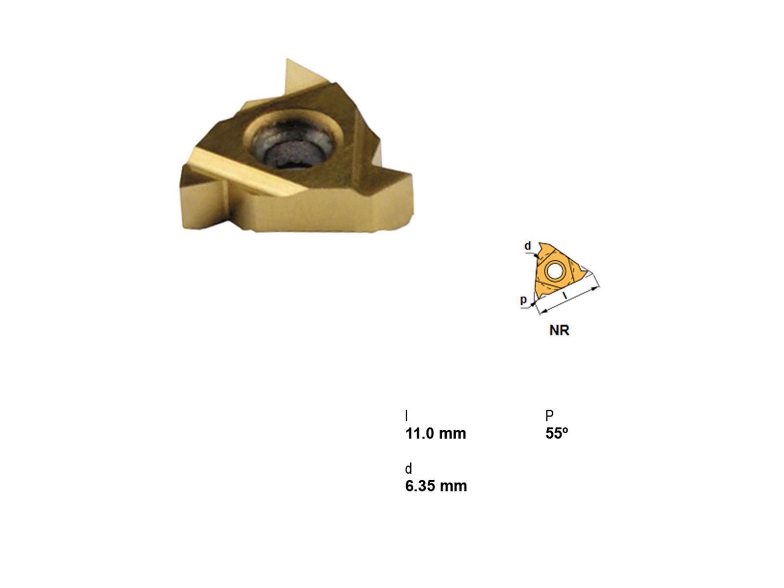 Canela Gevindplatte 11NR-A55-TIN25 er en høj kvalitets gevindplatte designet til indvendige gevind. Dette værktøj tilbyder præcision og holdbarhed, takket være sin robuste TiN-coating. Gevindplatten understøtter en stigning fra 0,5 til 1,5 mm (46-16 TPI) og har en gevindvinkel på 55°, hvilket sikrer kompatibilitet med forskellige gevindtyper. Ideel til professionelle anvendelser.
