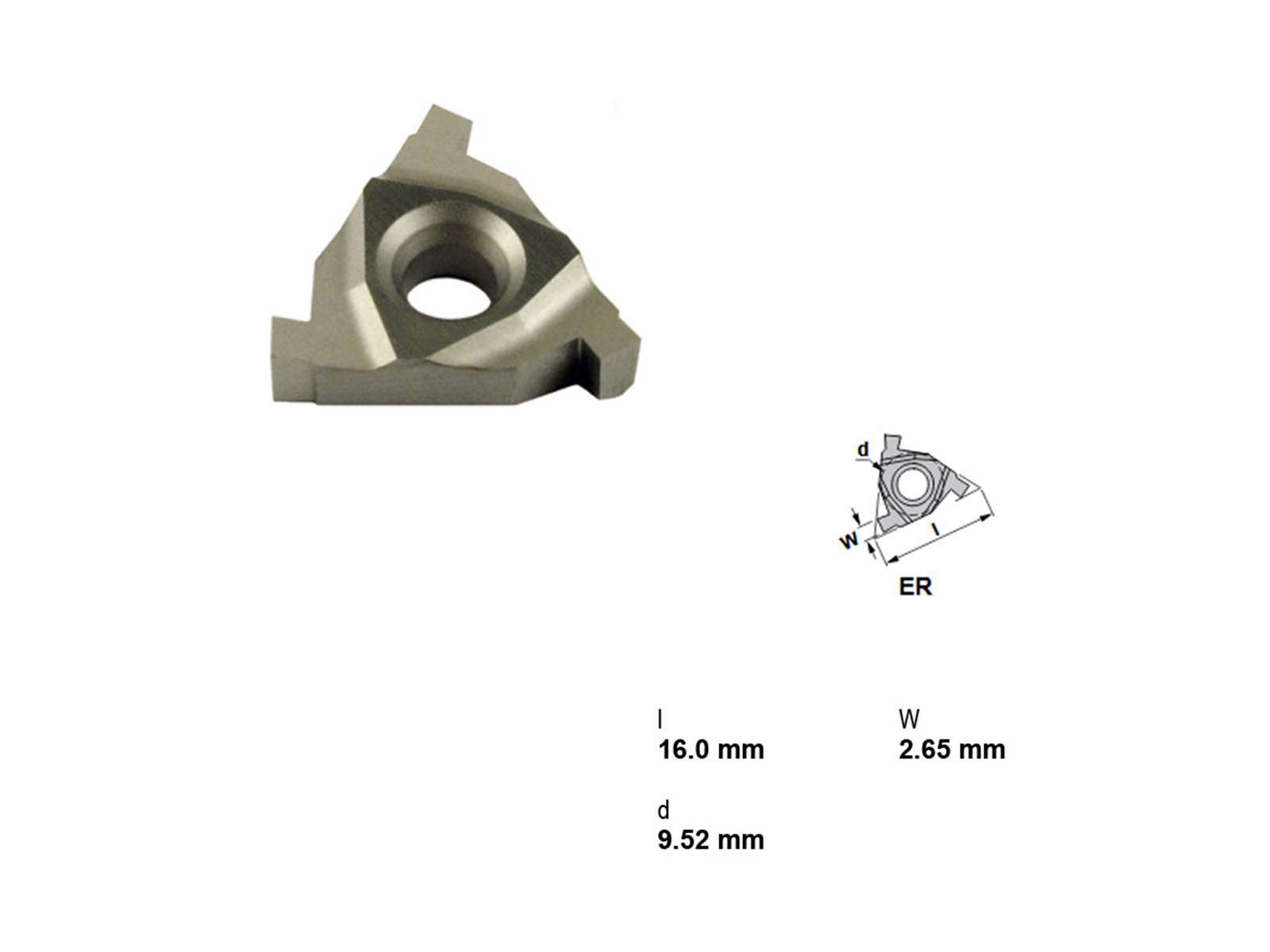 Canela gevindplatte, model 16ER-250LG TL20, er designet specifikt til fremstilling af låseringe. Denne plade har en skærebredde på 2,65 mm og er udstyret med en TL20 belægning, der forbedrer holdbarheden og ydeevnen. Coatingen er af typen TiAIN, som er kendt for sin modstandsdygtighed over for høj varme og slid. Ideel til både industrielle og tekniske anvendelser.