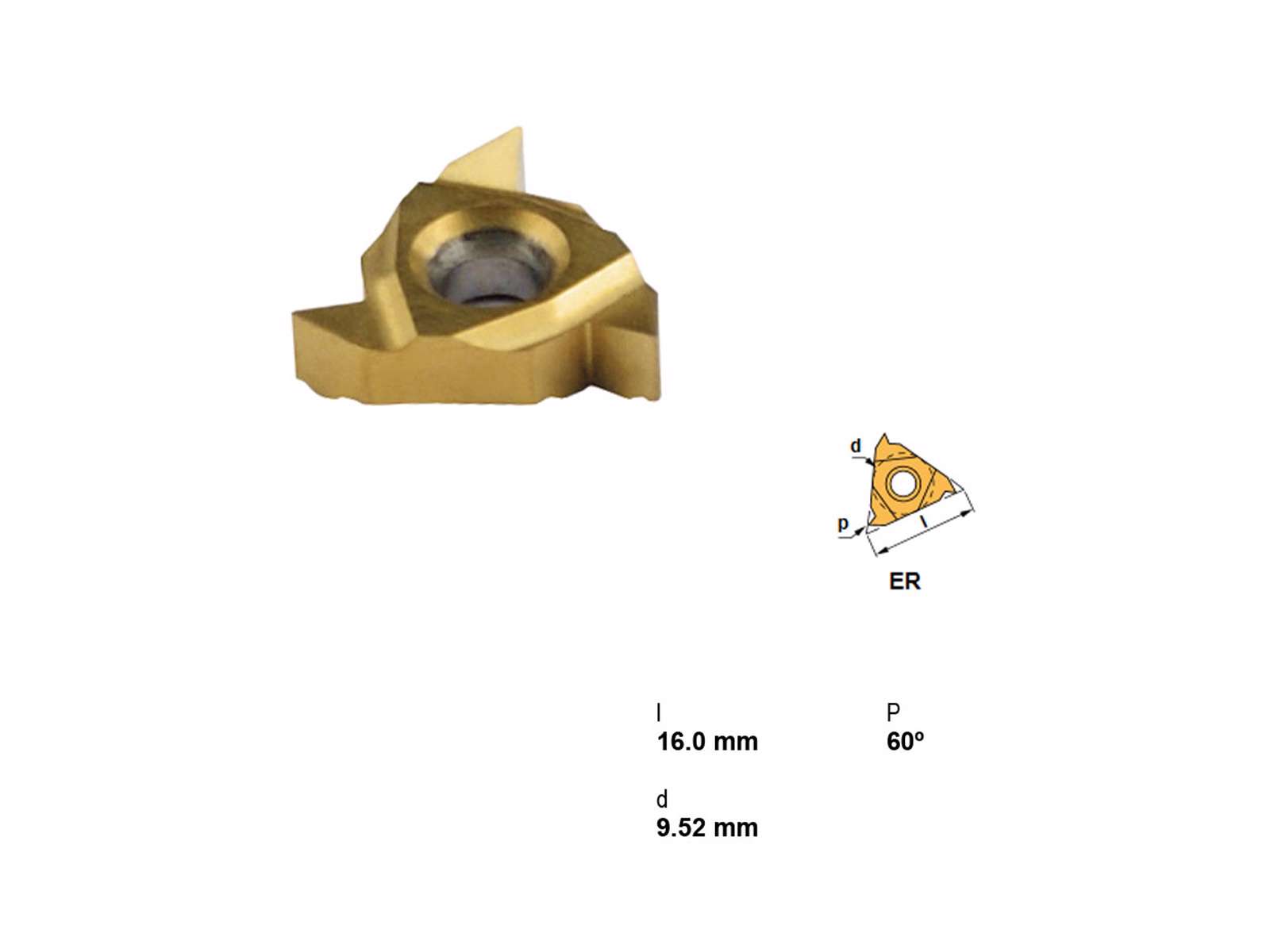 Canela gevindplatte, model 16ER-AG60 TIN25, er designet til højre indgreb med en gevindstigning fra 0,5-3,0 mm eller 48-8 TPI. Dette værktøj er ideelt til at skabe præcise 60° gevind. Platten er coatet med TIN25, en robust belægning bestående af TiN-TiC-TiN, der sikrer lang holdbarhed og fremragende ydeevne under krævende forhold.