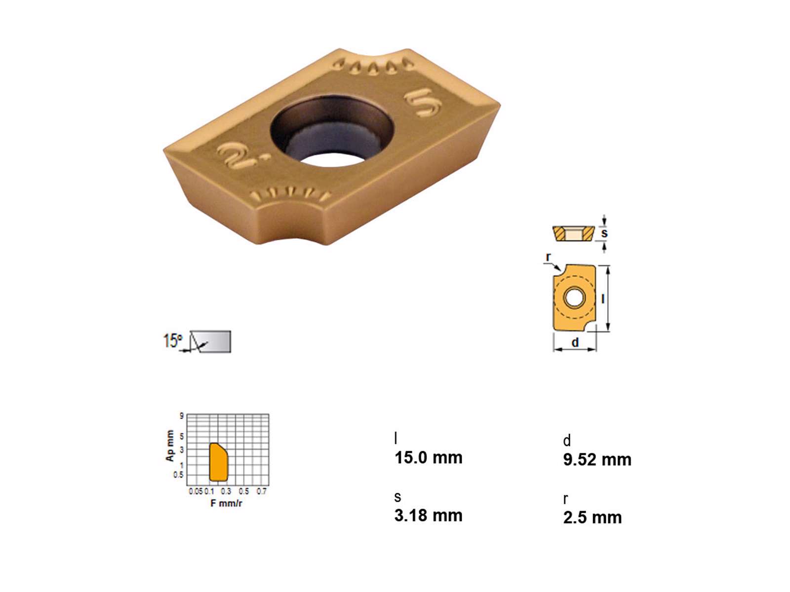 Canela ADMT1503R2.5TIN25 platte, designet til optimal præcision og holdbarhed. Fremstillet med TiN-TiC-TiN belægning, hvilket sikrer effektiv bearbejdning af stål.