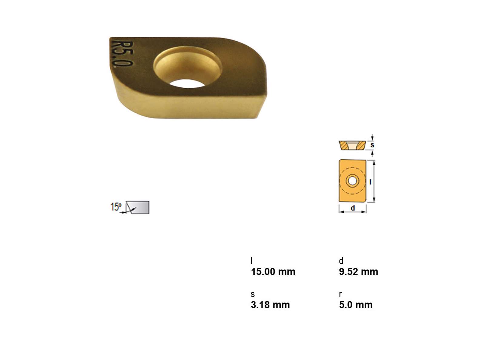 Canela platte ADMW1503R5.0TIN25 er en holdbar og effektiv platte til metalbearbejdning. Med en parallelogramform på 85° og en næseradius på 5,0 mm er den ideel til bearbejdning af stål.