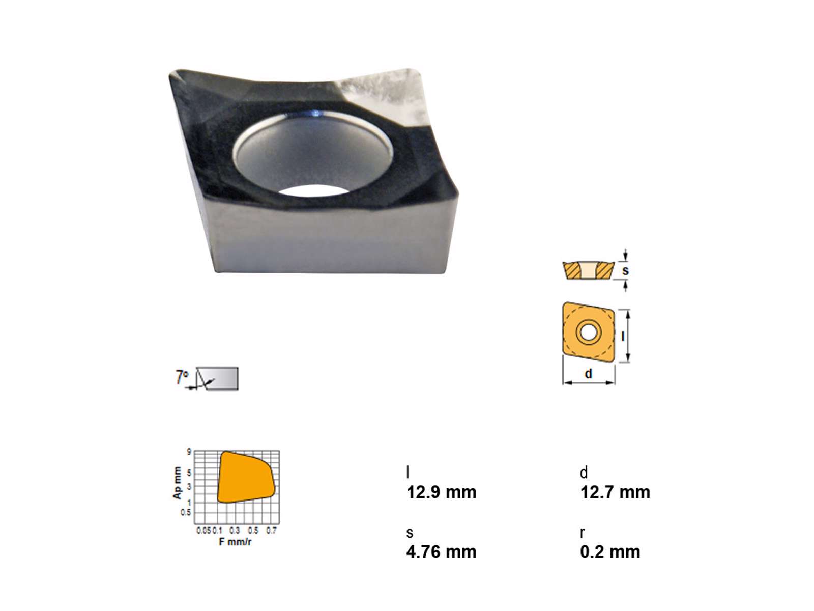 Canela platte CCGT120402-ALKM15 er en højpræcisionsplade til bearbejdning af hårde materialer som aluminium, glasfiber, carbon og keramik. Med en robust geometri og holdbar overflade af WC+Co, sikrer den en præcis og glat finish.