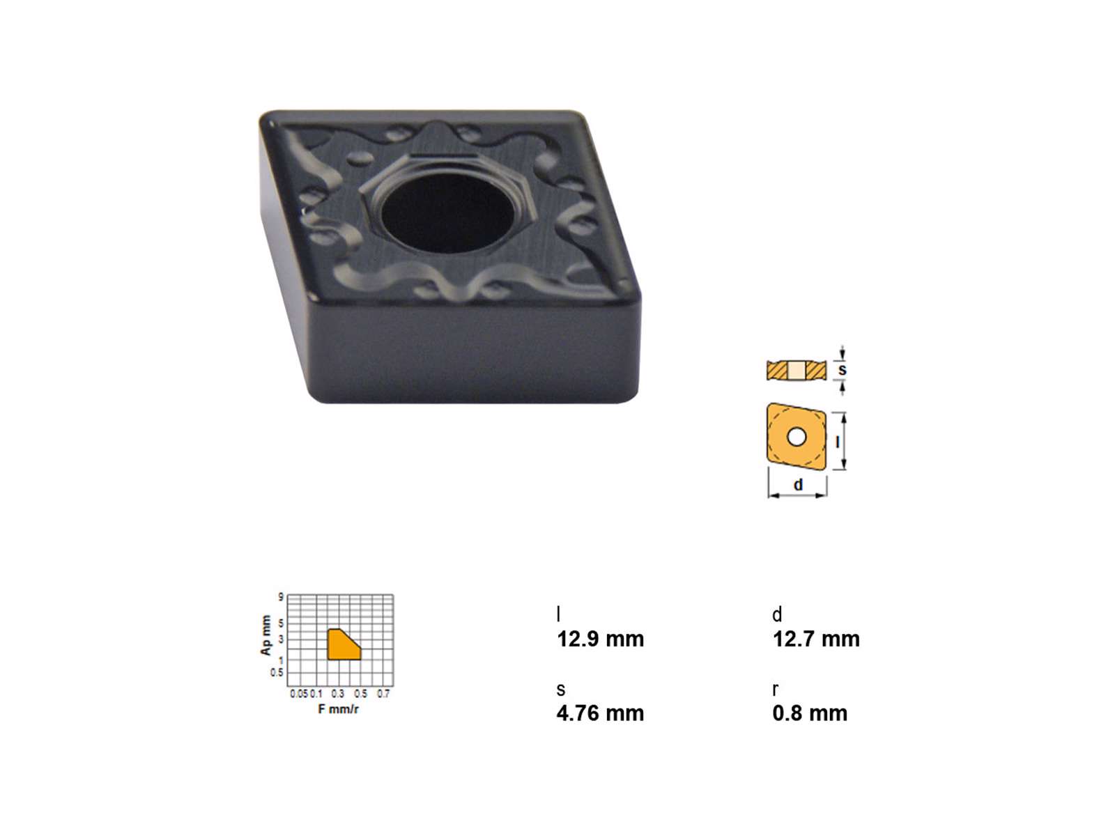 Canela platte CNMG120408KC-TK15 er ideel til præcisionsbearbejdning af støbejern. Den har en rombeform på 80°, KC geometri og måler 12,9 x 12,7 x 4,76 mm med en radius på 0,8 mm. Overfladen er belagt med TK15 (TiCM+Al2O3), hvilket sikrer holdbarhed og effektiv bearbejdning.