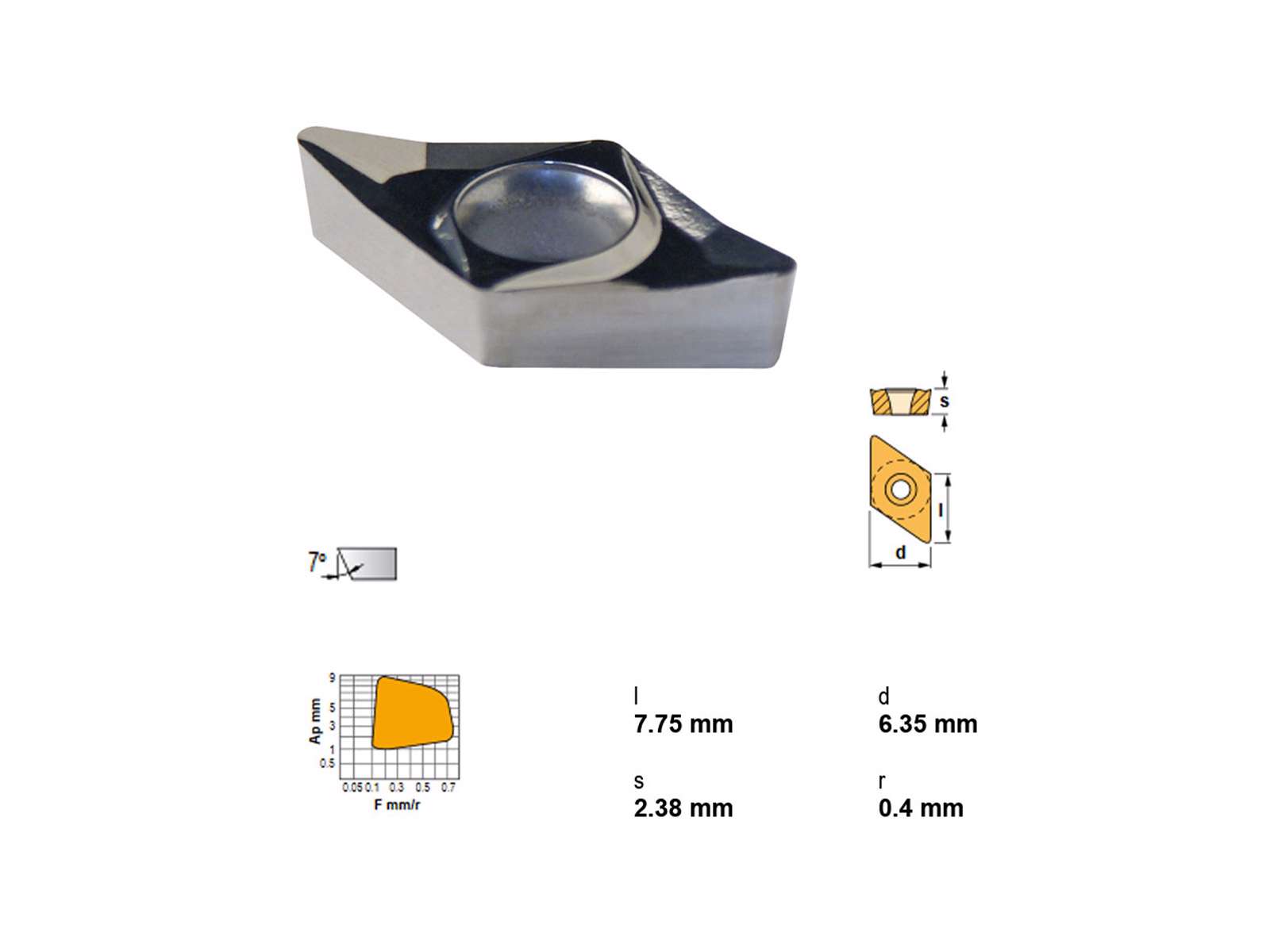 Canela platte DCGT070204-ALKM15 er en høj kvalitets skærende indsats designet til præcisionsbearbejdning af materialer som aluminium, glasfiber, carbon og keramik. Denne rombeformede indsats med en 55° vinkel er belagt med KM15 (WC+Co) for øget holdbarhed og høj præcision. Ideel til præcisionsopgaver i krævende materialer.