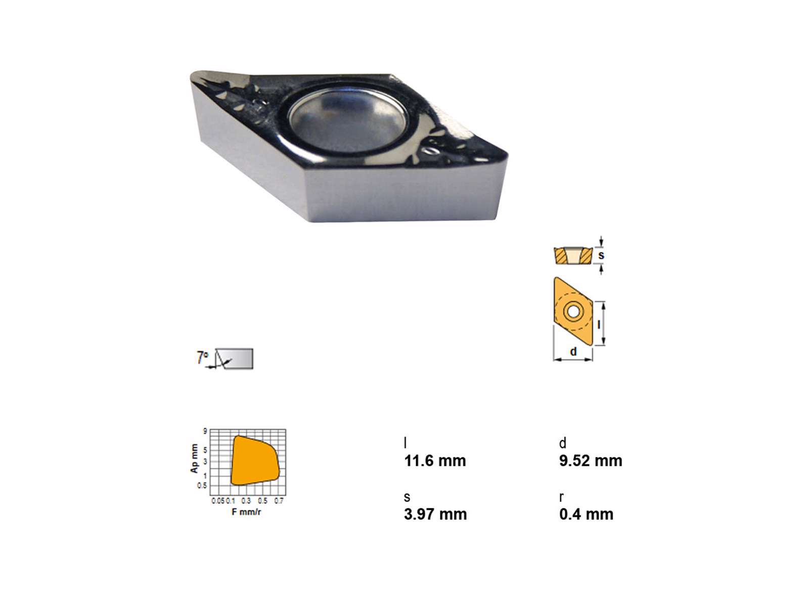 Canela platte DCGT11T304-APKM15 er en præcisionsplatte designet til krævende bearbejdning af materialer som aluminium, glasfiber, carbon og keramik. Med en rombeform på 55° og KM15 overflade (WC+Co), sikrer den høj holdbarhed og nøjagtighed i skæreprocessen.