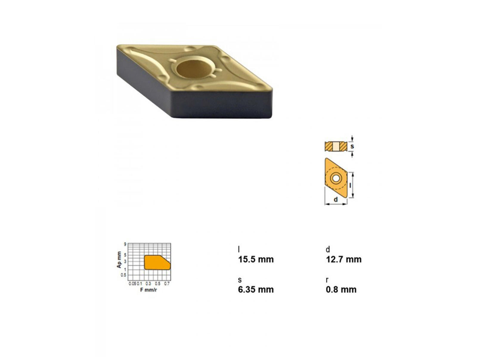 Canela platte DNMG150608MHC-TN20 er en præcisionsplade designet til skæring i stål. Med sin rhombeform på 55° og geometri MHC sikrer denne platte effektiv og præcis bearbejdning. Den måler 15,50 mm i længde, 12,70 mm i bredde, 6,35 mm i højde og har en radius på 0,8 mm. Overfladen er belagt med TN20, som bidrager til optimal ydeevne og slidstyrke. Ideel til professionelle, der ønsker kvalitet og holdbarhed i metalbearbejdning.