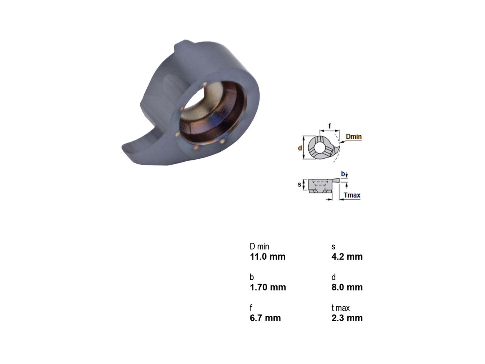 Canela platte LS011.0160TL20 er en præcisionsskær designet til indvendig sporstik i stål. Med en minimum arbejdsdiameter på 11,00 mm sikrer den præcis og effektiv bearbejdning.