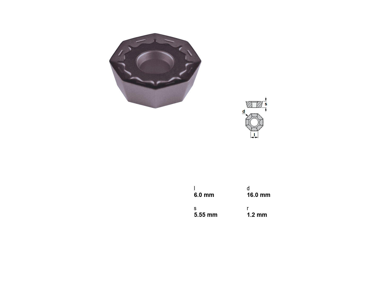 Canela platte ODMT060512TIN21 er en effektiv skær til præcisionsbearbejdning af stål. Den oktagonale form sikrer stabilitet og alsidighed. Med en skærebredde på 6,00 mm og en radius på 1,2 mm leverer den høj ydeevne og præcision. Plattens diameter er 16,00 mm, og højden er 5,55 mm. Overfladen er belagt med TN15 for ekstra slidstyrke og holdbarhed.
