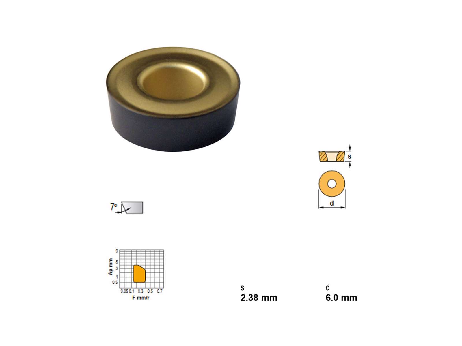 Canela platte RCMT0602M0TN15 er en rund skæreplatte med MT-geometri, ideel til bearbejdning af stål. Med en diameter på 6,00 mm og en højde på 2,38 mm leverer den præcise resultater. Overfladen er behandlet med TN15, hvilket sikrer optimal ydeevne og holdbarhed. Perfekt til industrielle anvendelser, hvor høj præcision og effektivitet kræves.