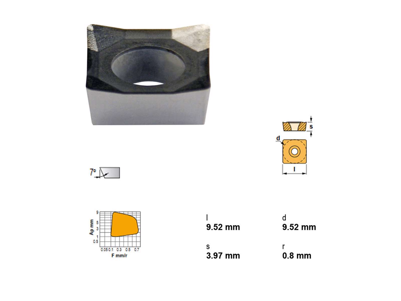 Canela SCGT09T308-ALZR10 er en kvadratisk skærindsats med AL-geometri og ZR10-belægning, udviklet til effektiv bearbejdning af aluminium, kobber og plast. Den tilbyder høj spånafgang og optimal overfladefinish ved lav skæremodstand.