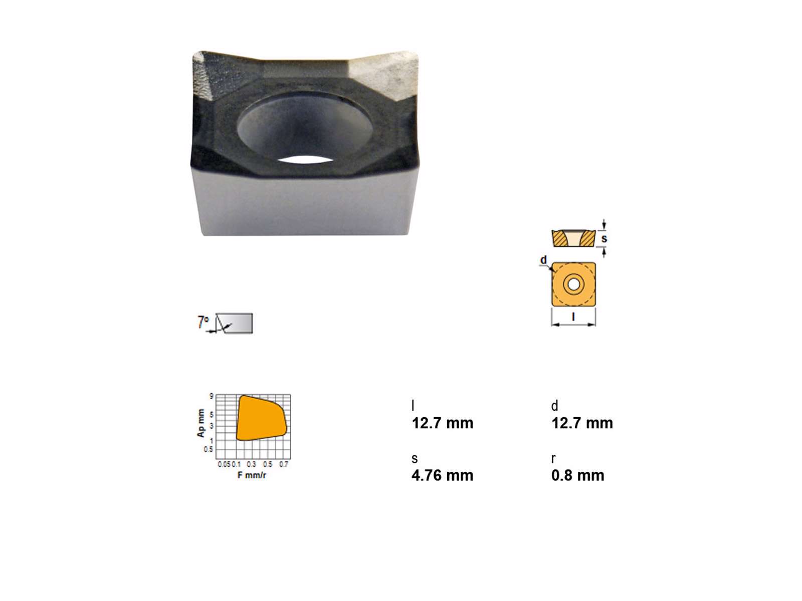 Canela SCGT120408-ALZR10 er en kvadratisk skærplade med AL-geometri og ZR10-belægning, udviklet til effektiv spåntagning i ikke-jernholdige materialer som aluminium, kobber og plastik. Den positive skærevinkel sikrer lav skærekraft og høj overfladekvalitet.