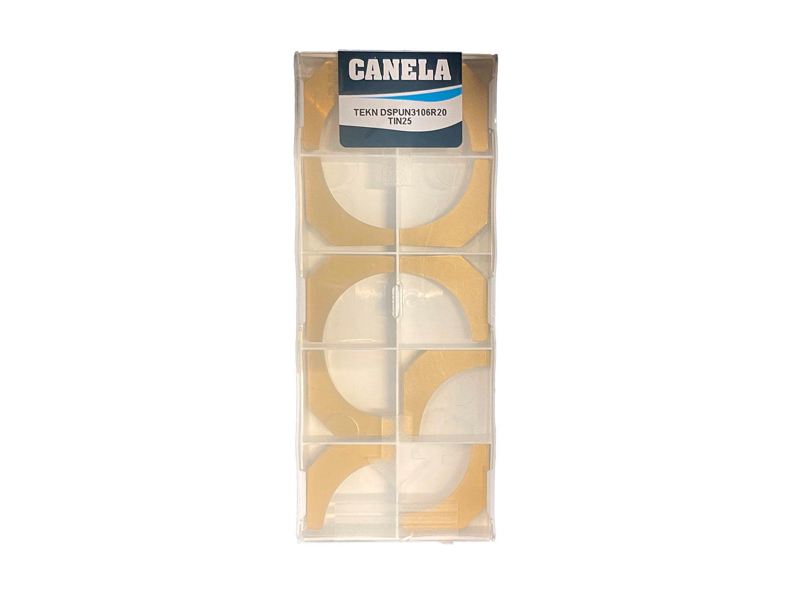 Canela DSPUN3106R20TIN25 er en skærende platte med præcise dimensioner og radius, velegnet til brug i krævende drejeopgaver. Belægningen TIN25 sikrer høj slidstyrke og lang levetid under bearbejdning af stål.