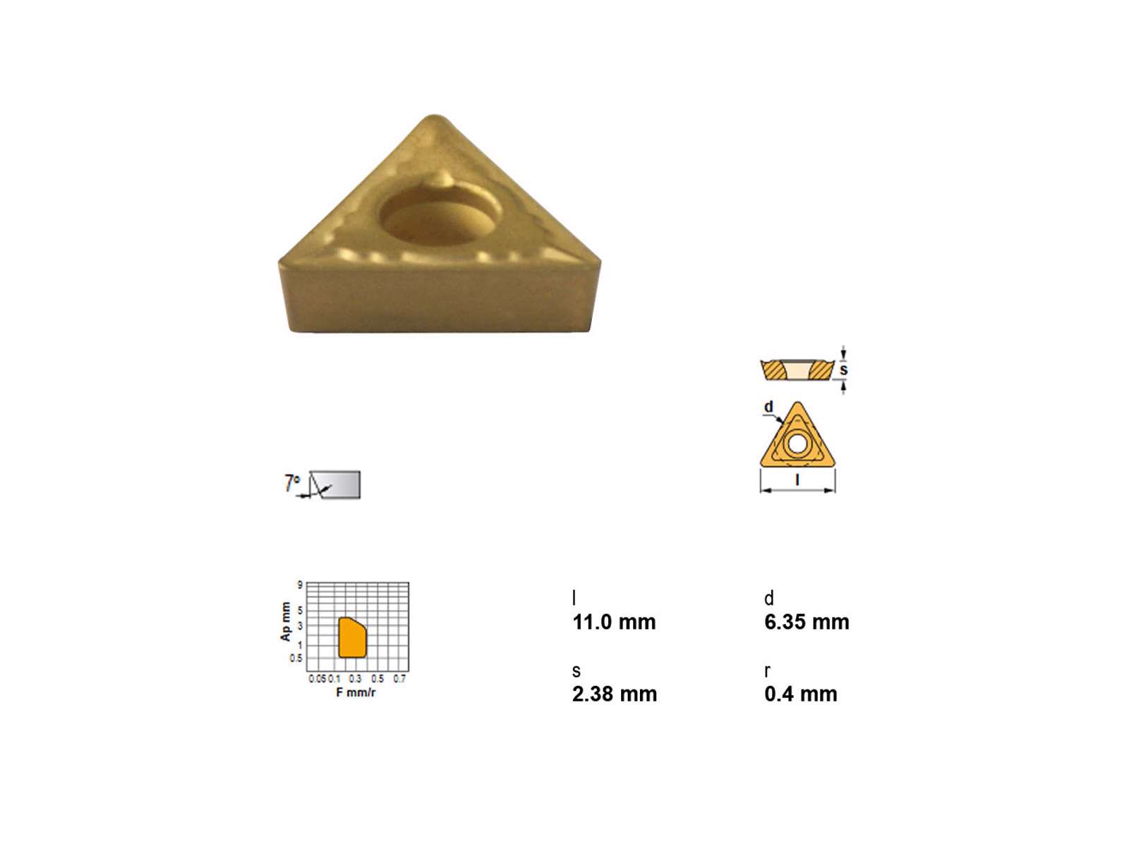 Canela TCMT110204TN15 er en trekantet drejeplade med MT-geometri og TN15 overfladebehandling, velegnet til bearbejdning af stål. Plattens præcise dimensioner og skæregeometri sikrer høj ydeevne og pålidelighed i skæreoperationer.